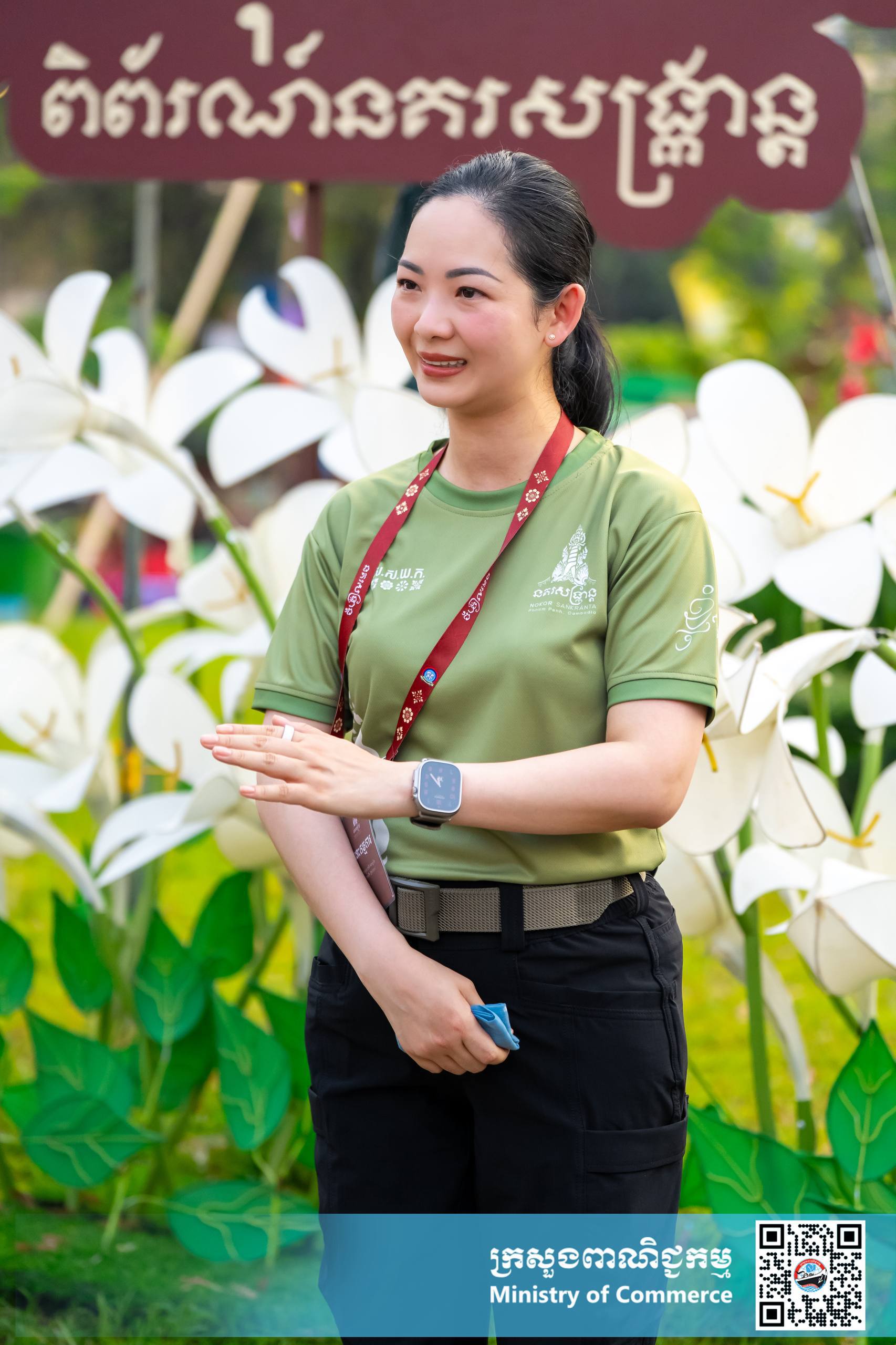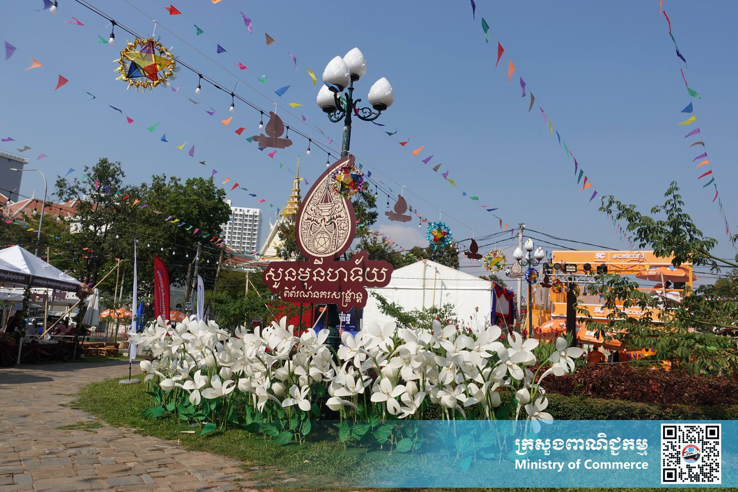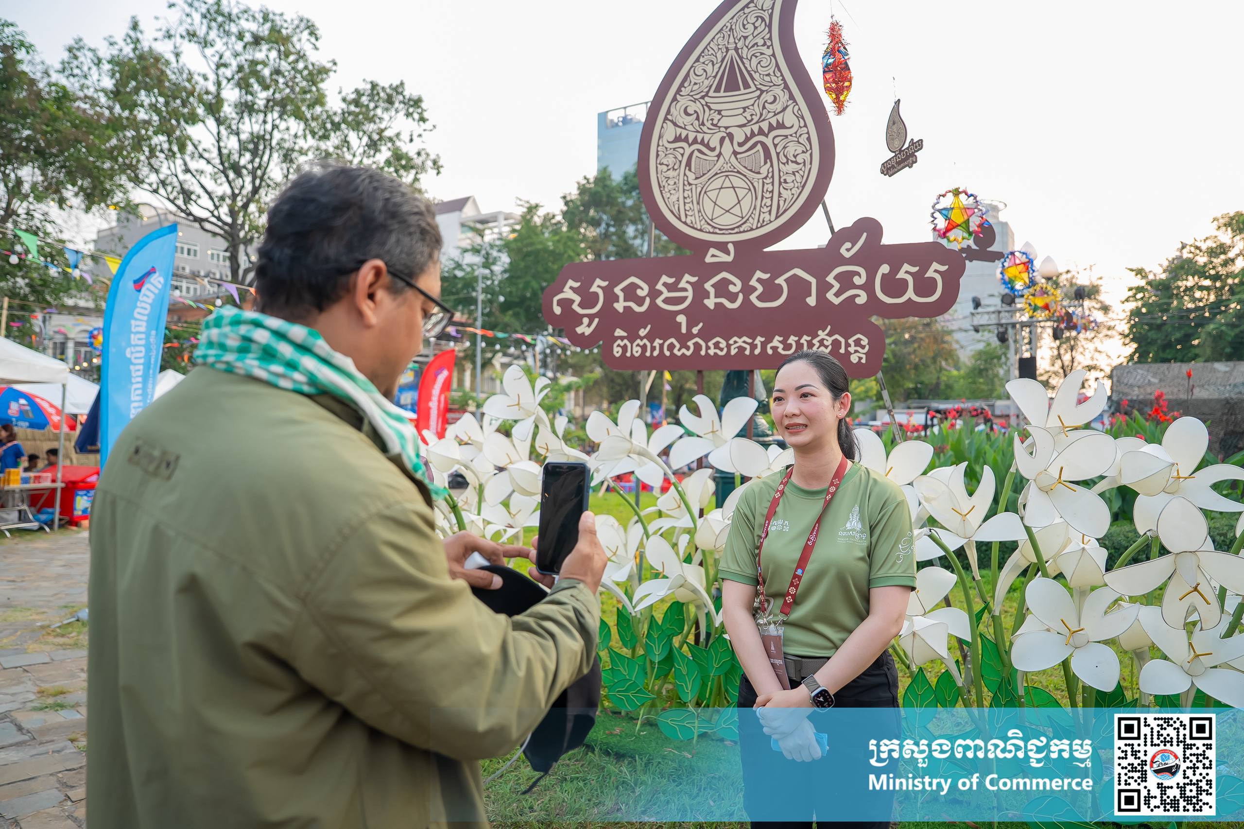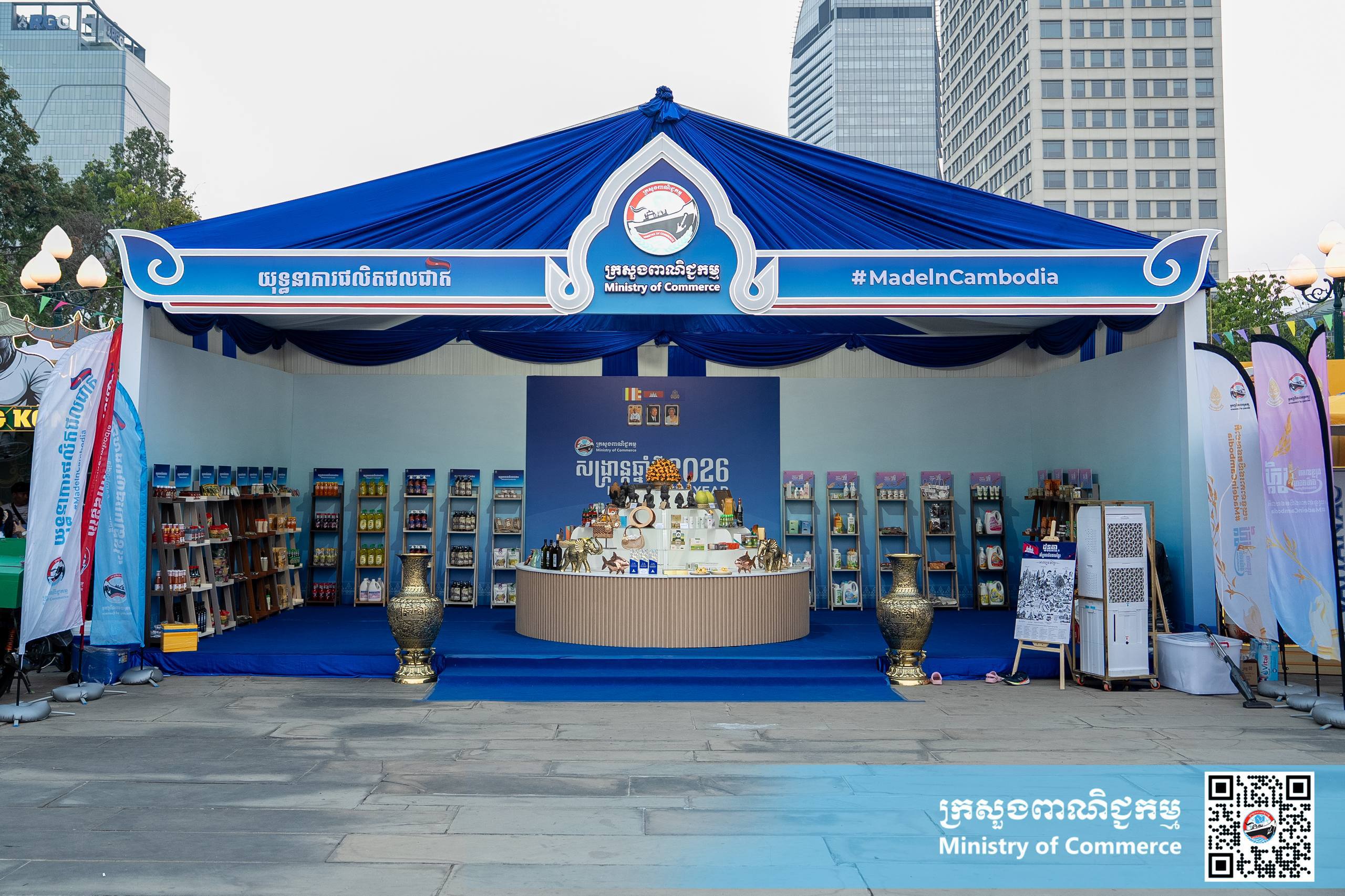 នាល្ងាចថ្ងៃអង្គារ ទី១៤ ខែមេសា ឆ្នាំ២០២៦ នៅស្តង់យុទ្ធនាការផលិតផលជាតិ #MadeInCambodia បរិវេណស្ពាននាគ លោកជំទាវ ចម និម្មល រដ្ឋមន្ត្រីក្រសួងពាណិជ្ជកម្ម បានអញ្ជើញទស្សនា “សួនមុនីហទ័យ និងពិព័រណ៍នគរសង្ក្រាន្ត” អមព្រឹត្តិការណ៍នគរសង្ក្រាន្ត និងដោយមានការអញ្ជើញចូលរួមពីថ្នាក់ដឹកនាំក្រសួងពាណិជ្ជកម្ម សិប្បករ-ផលិតករក្នុងស្រុក និងប្រជាពលរដ្ឋជាច្រើនរូប។