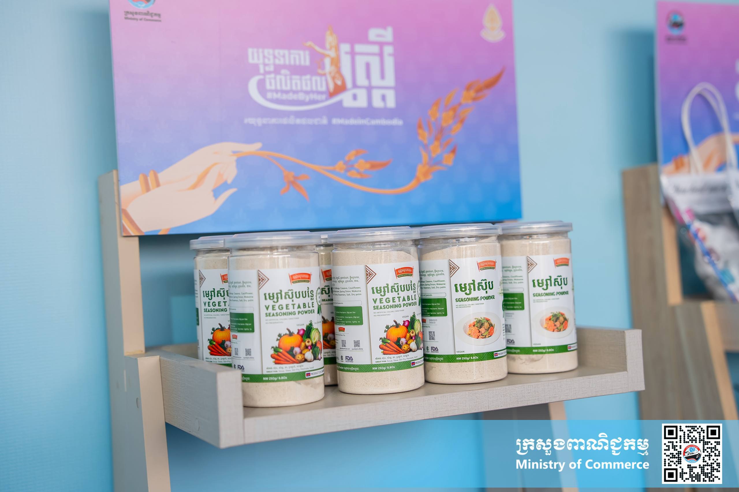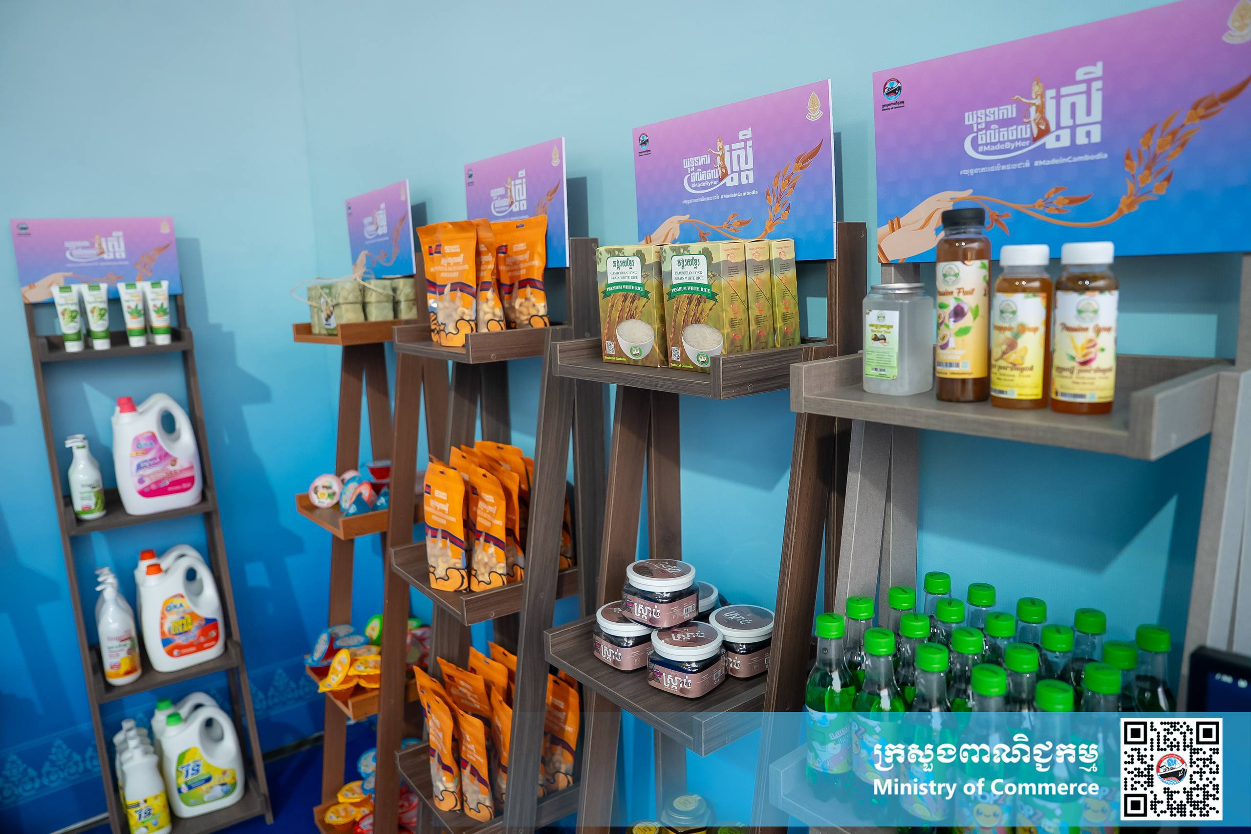 បន្ថែមលើនេះ ក្រសួងពាណិជ្ជកម្ម ក៏បានរៀបចំ ស្តង់យុទ្ធនាការផលិតផលជាតិ #MadeInCambodia ដើម្បីដាក់តាំងបង្ហាញនូវផលិតផលផលិតនៅកម្ពុជា និងផលិតផលស្ត្រី #MadeByHer ក្នុងគោលដៅបង្កើនភាពប្រកួតប្រជែង ការទទួលស្គាល់ម៉ាក និងការបង្កើនតម្លៃបន្ថែមសម្រាប់ផលិតផលជាតិ និងផលិតផលផលិតដោយស្ត្រី សំដៅបង្កើនការជ្រៀតចូលទីផ្សារ និងជំរុញការប្រើប្រាស់ផលិតផលជាតិ ឈានទៅការពង្រីកឱកាសក្នុងការនាំចេញទៅកាន់ទីផ្សារតំបន់ និងសកលលោក។