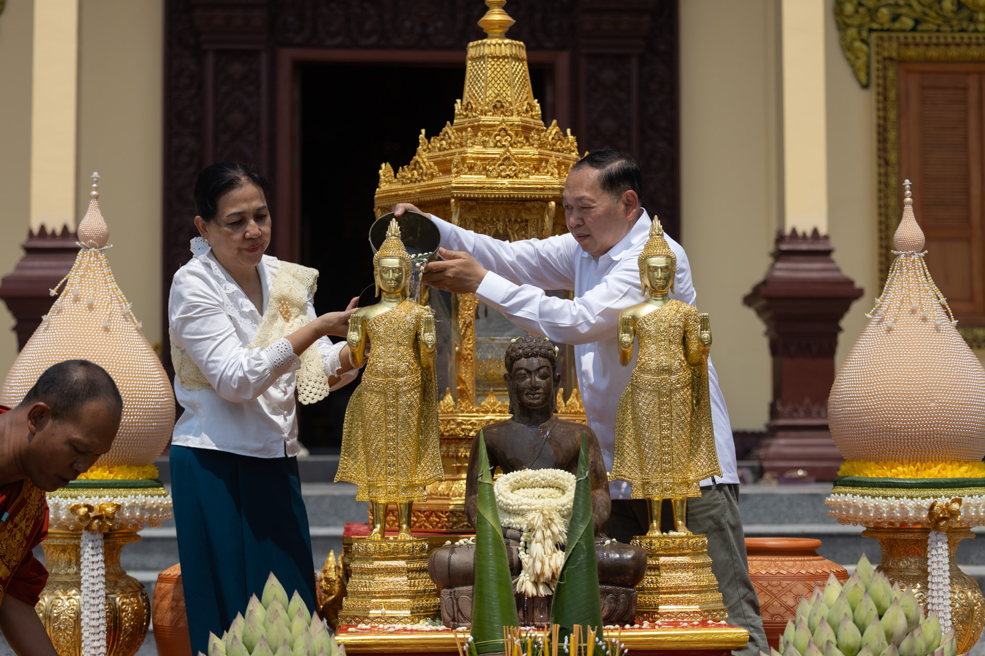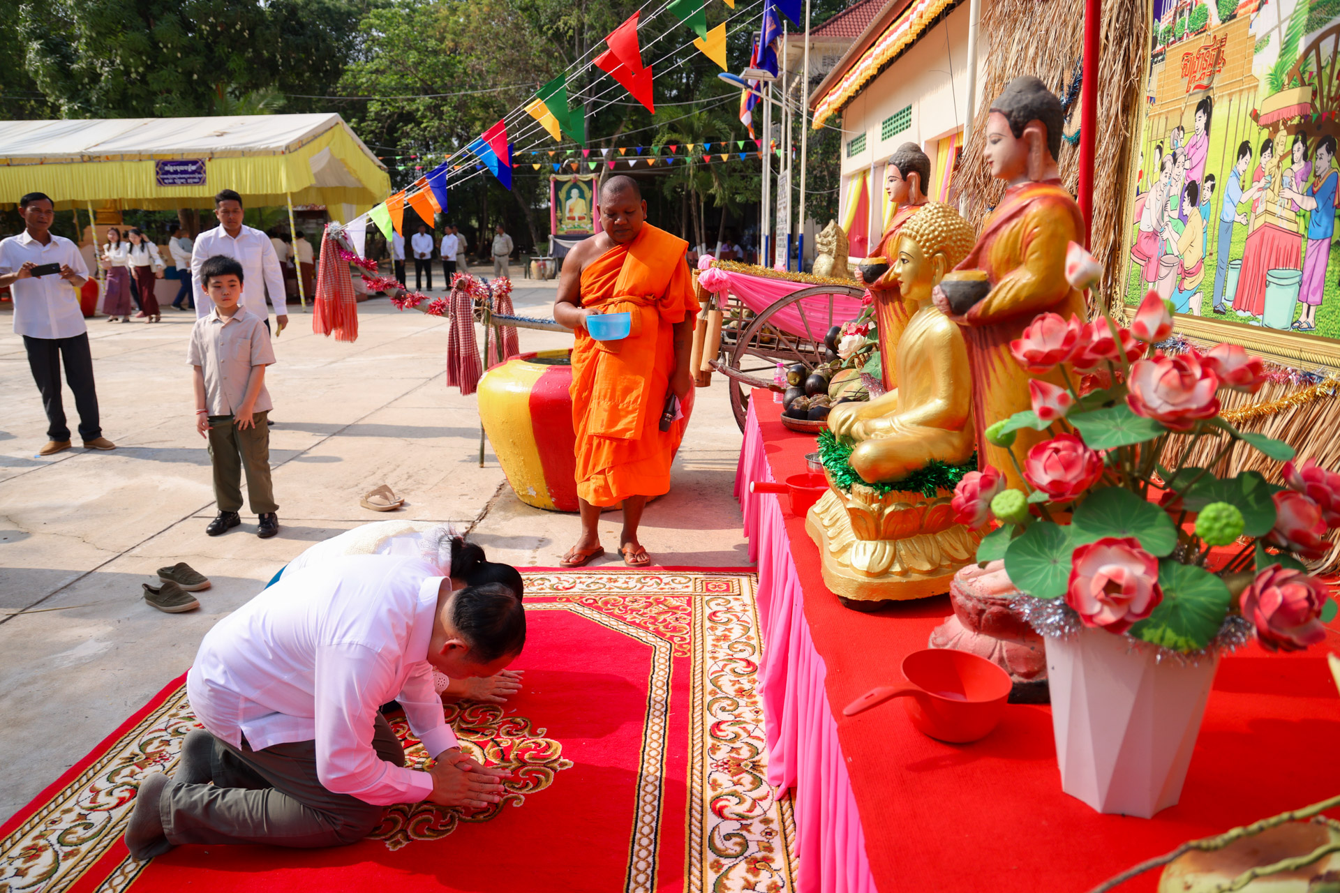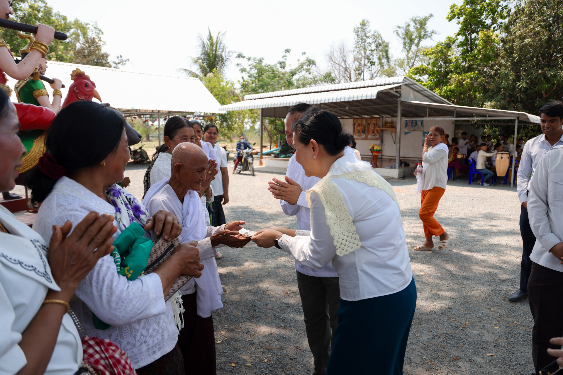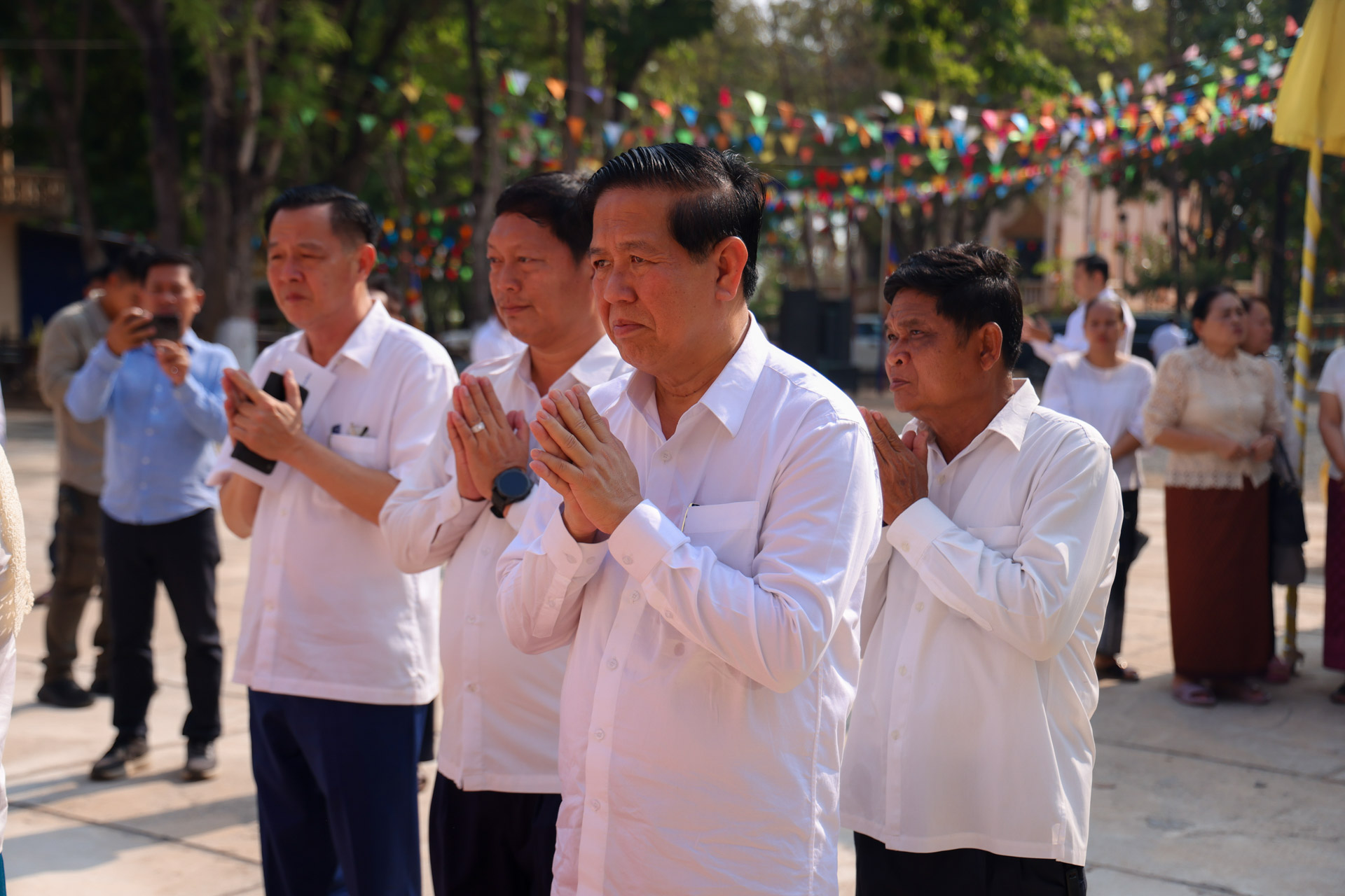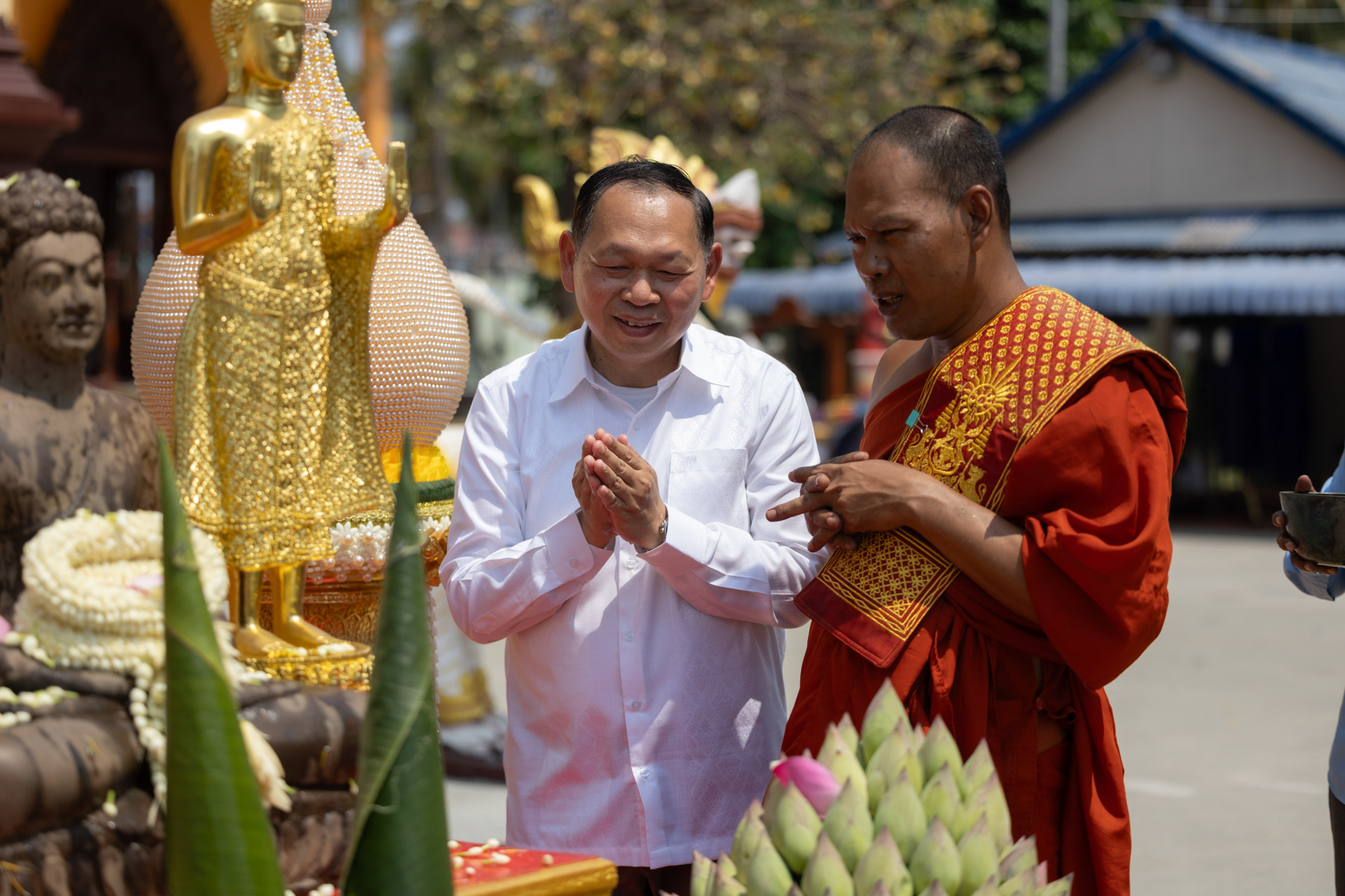 ក្នុងឱកាសនោះ ឯកឧត្តមរដ្ឋមន្ដ្រី និងលោកស្រីព្រមទាំងគណៈប្រតិភូរួមដំណើរ បានអញ្ជើញបង្សុកូល និងរាប់បាត្រ ដើម្បីឧទ្ទិសកុសលជូនដល់បុព្វការីជន មាតាបិតា ជីដូនជីតា និងញាតកាទាំង៧សន្ដាន ដែលបានចែកឋានទៅកាន់បរលោកខាងមុខ ក៏ដូចជាវីរកងទ័ព វីរនគរបាល ដែលបានពលីជីវិតក្នុងបុព្វហេតុការពារជាតិមាតុភូមិ។ បន្ទាប់មក ឯកឧត្តមរដ្ឋមន្ដ្រី និងគណៈប្រតិភូ បានអញ្ជើញប្រទក្សិណជុំវិញវាលុកចេតិយ (ពូនភ្នំខ្សាច់) ដើម្បីឧទ្ទិសដល់ព្រះមុនីចេតិយរបស់ព្រះសម្មាសម្ពុទ្ធនិង និងរំដោះកម្មពៀរវេរាទាំងឡាយ ព្រមទាំងស្រង់ព្រះសុគន្ធវារីថ្វាយព្រះពុទ្ធប្បដិមា ដើម្បីលាងជម្រះនូវបាបកម្មទាំងឡាយនិងទទួលពរជ័យសិរីសួស្តីក្នុងឆ្នាំថ្មី ជាពិសេសសុំសេចក្តីសុខ សេចក្តីចម្រើន ត្រជាក់ត្រជំនៅក្នុងក្រុមមគ្រួសារ និងសង្គមជាតិទាំងមូល។