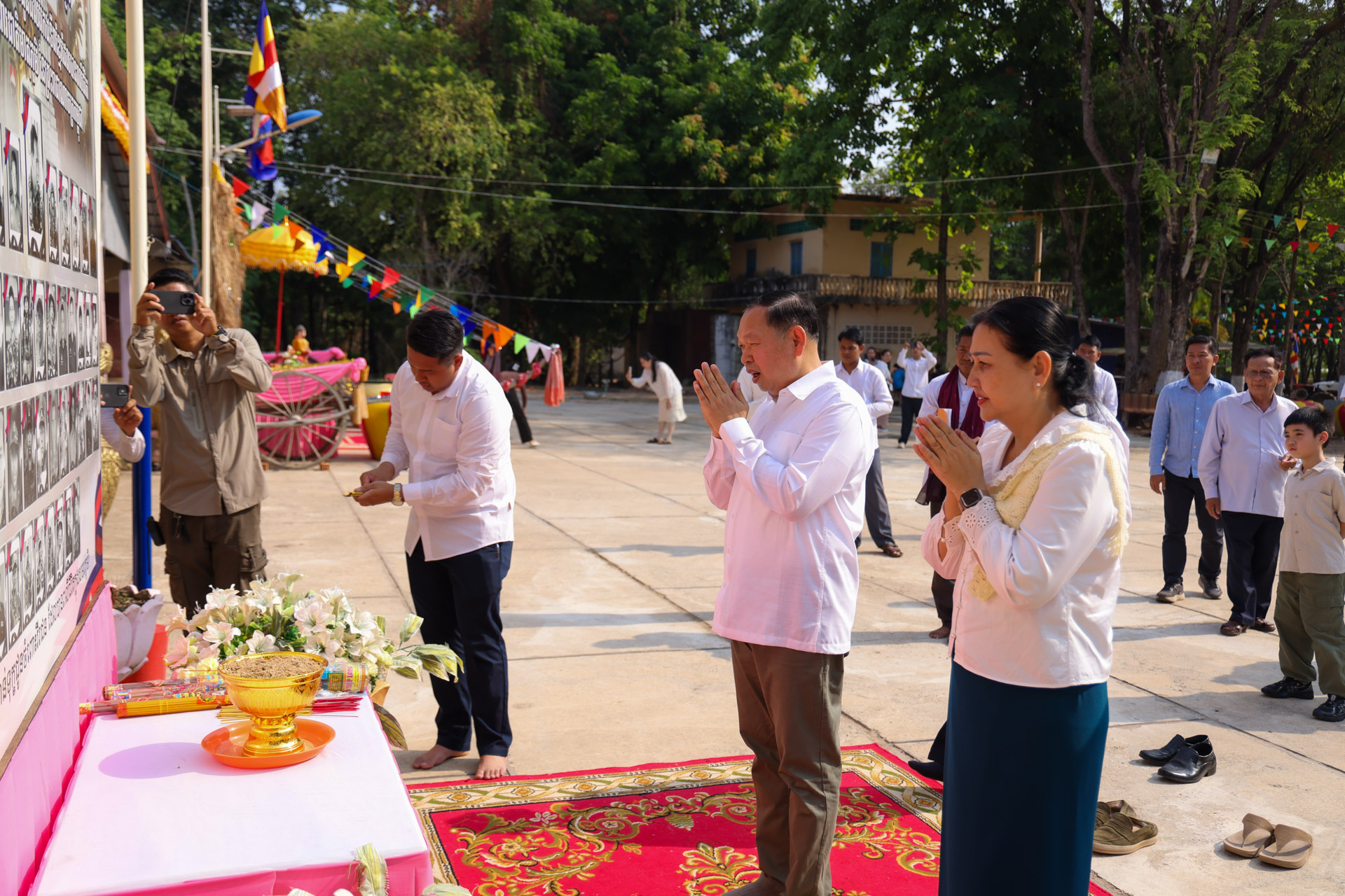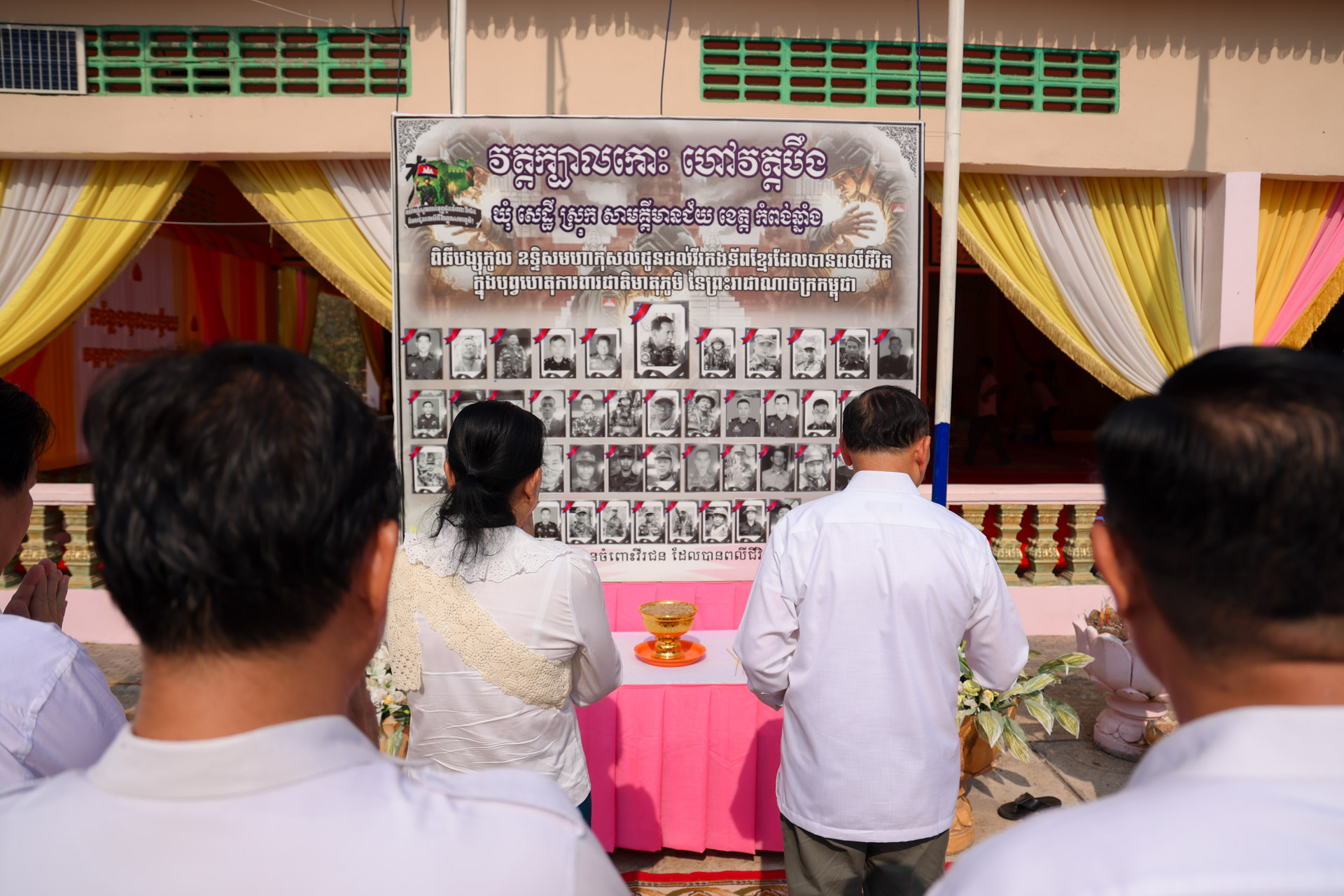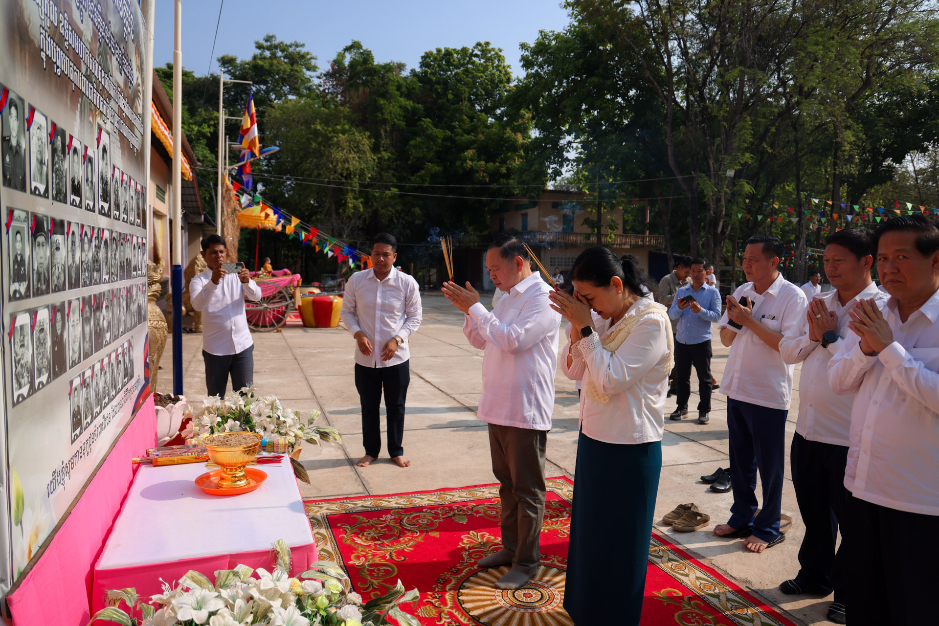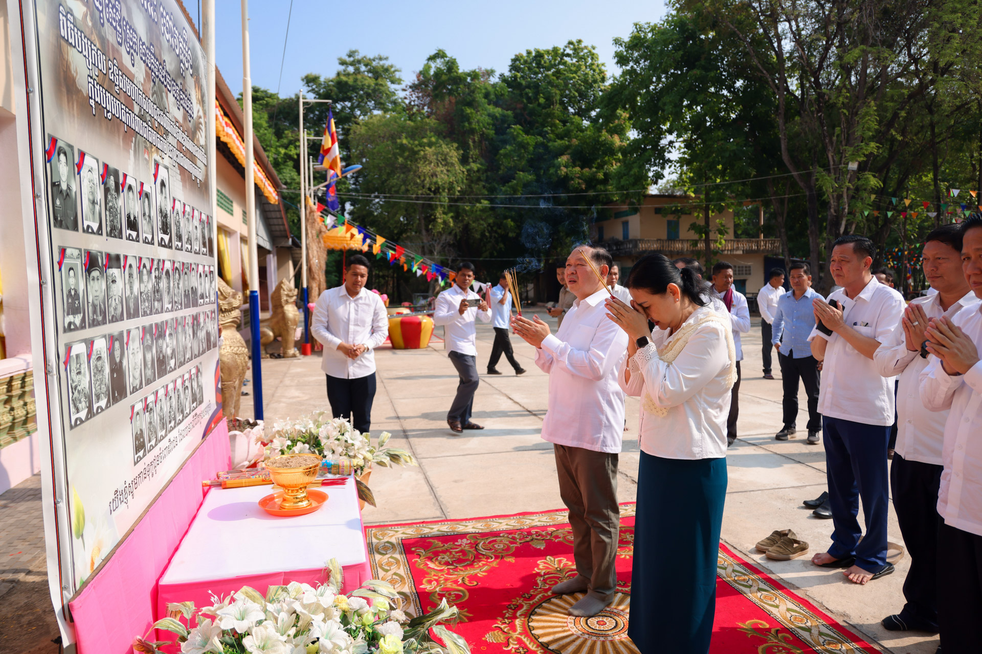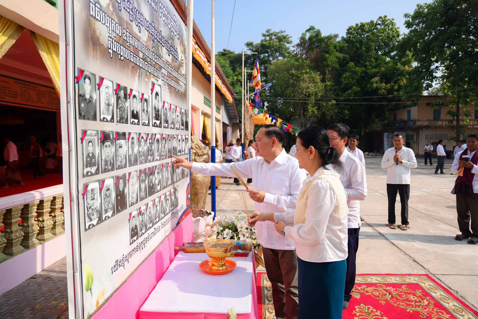 សូមជម្រាបជូនដែរថា វេលាប្រកបដោយសទ្ធាជ្រះថ្លានោះដែរ ឯកឧត្តមរដ្ឋមន្ដ្រី និងលោកជំទាវ ព្រមទាំងគណៈប្រតិភូ ក៏បានអញ្ជើញគោរពវិញ្ញាណក្ខន្ធវីរកងទ័ពពលី ដែលបានបូជាជីវិត ក្នុងបុព្វហេតុការពារអធិបតេយ្យភាព និងបូរណភាពបូរណភាពទឹកដី អំឡុងពេលដែលមានការប៉ះទង្គិចគ្នាដោយប្រដាប់អាវុធរវាងកងទ័ពកម្ពុជា ថៃនាពេលកន្លងមក៕