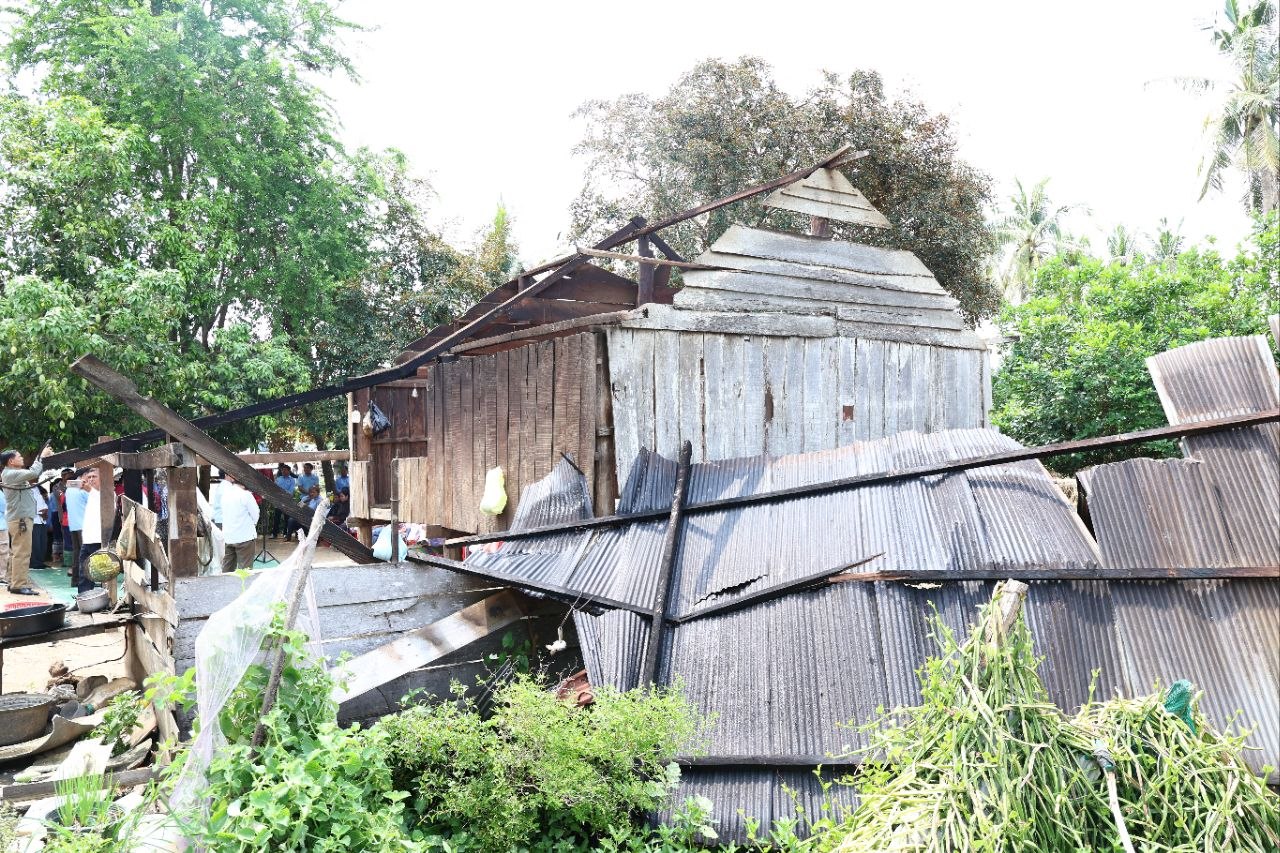 អភិបាលខេត្តកំពង់ស្ពឺ នាំអំណោយមនុស្សធម៌ចែកជូនពលរដ្ឋរងគ្រោះដោយសារខ្យល់កន្ត្រាក់ ៤៤ខ្នងផ្ទះ នៅស្រុកឱរ៉ាល់