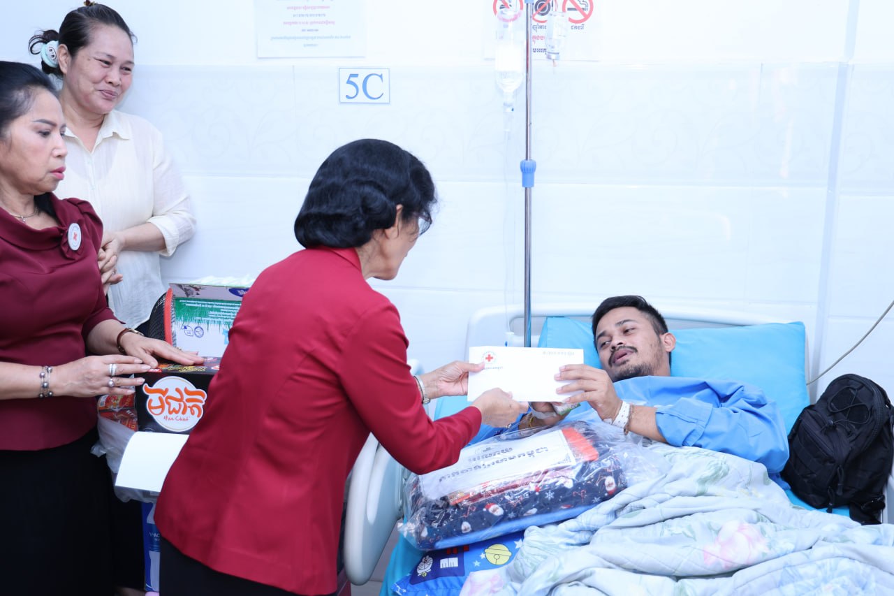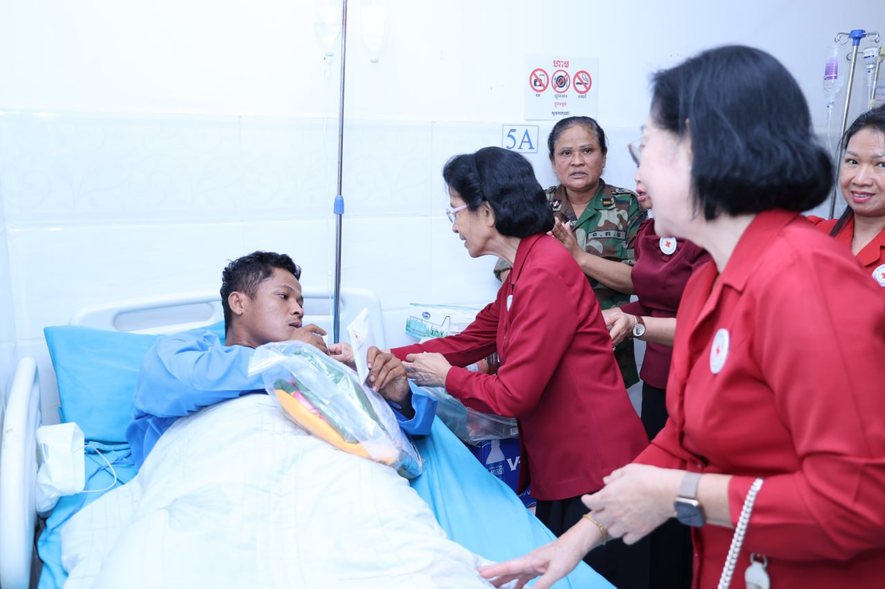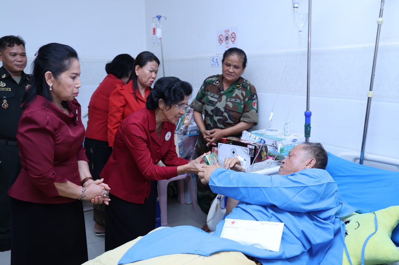 ក្នុងមនោសញ្ចេតនាគោរពស្រឡាញ់ និងជួយសម្រាលការលំបាកចំពោះយោធិន ដែលមានជំងឺ នៅរសៀលថ្ងៃច័ន្ទ ទី២០ ខែមេសាឆ្នាំ២០២៦ សម្តេចកិត្តិព្រឹទ្ធបណ្ឌិត ប៊ុនរ៉ានី ហ៊ុនសែន ប្រធានកាកបាទក្រហមកម្ពុជា បានចាត់លោកជំទាវ ពុំ ចន្ទីនី អគ្គលេខាធិការកាកបាទក្រហមកម្ពុជា និងសហការី អញ្ជើញសួរសុខទុក្ខ និងនាំយកអំណោយមនុស្សធម៌ ផ្តល់ជូនយោធិនមានជំងឺ ដែលកំពុងសម្រាកព្យាបាលនៅមន្ទីរពេទ្យព្រះកេតុមាលា ក្នុងរាជធានីភ្នំពេញ។