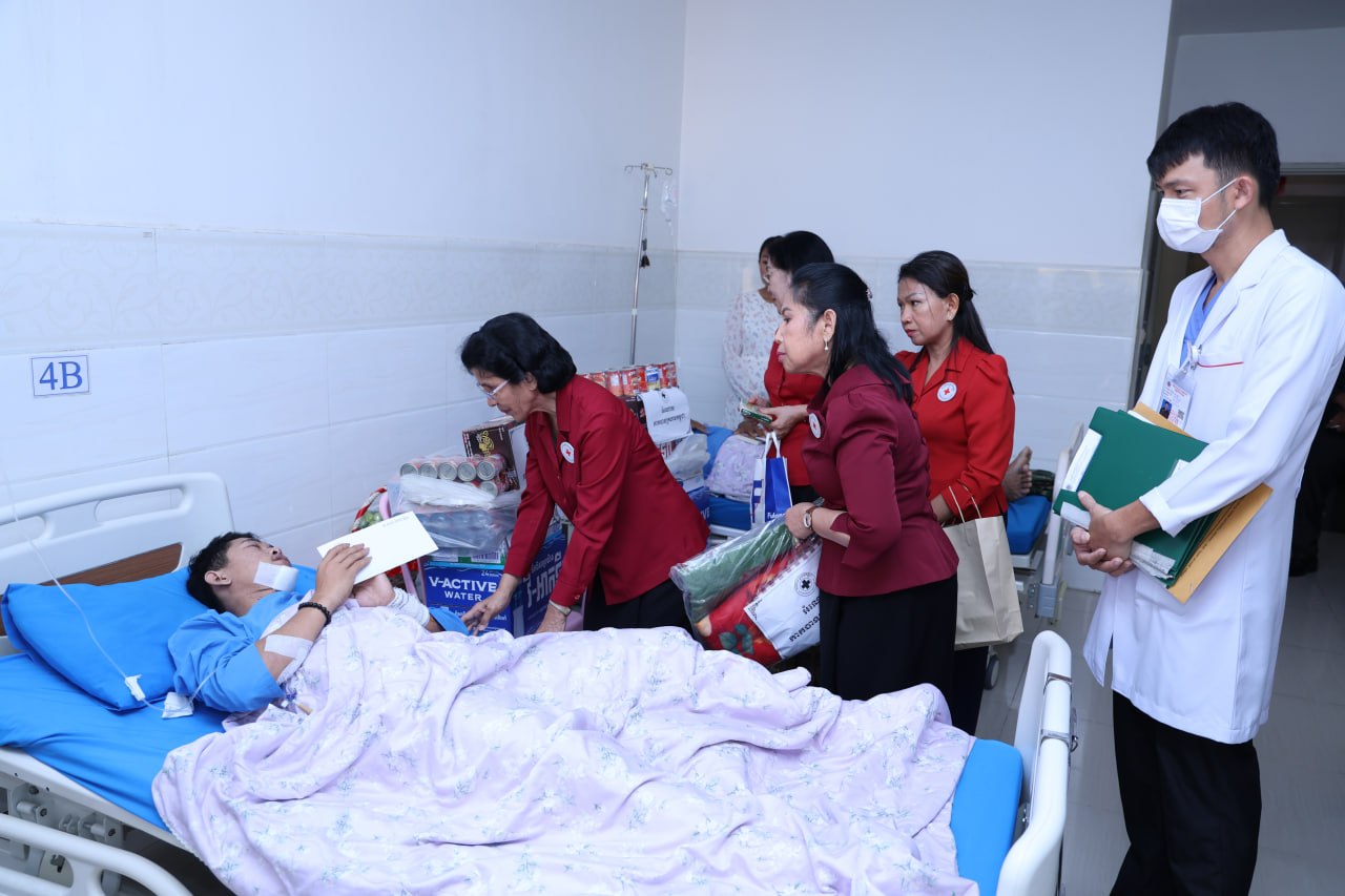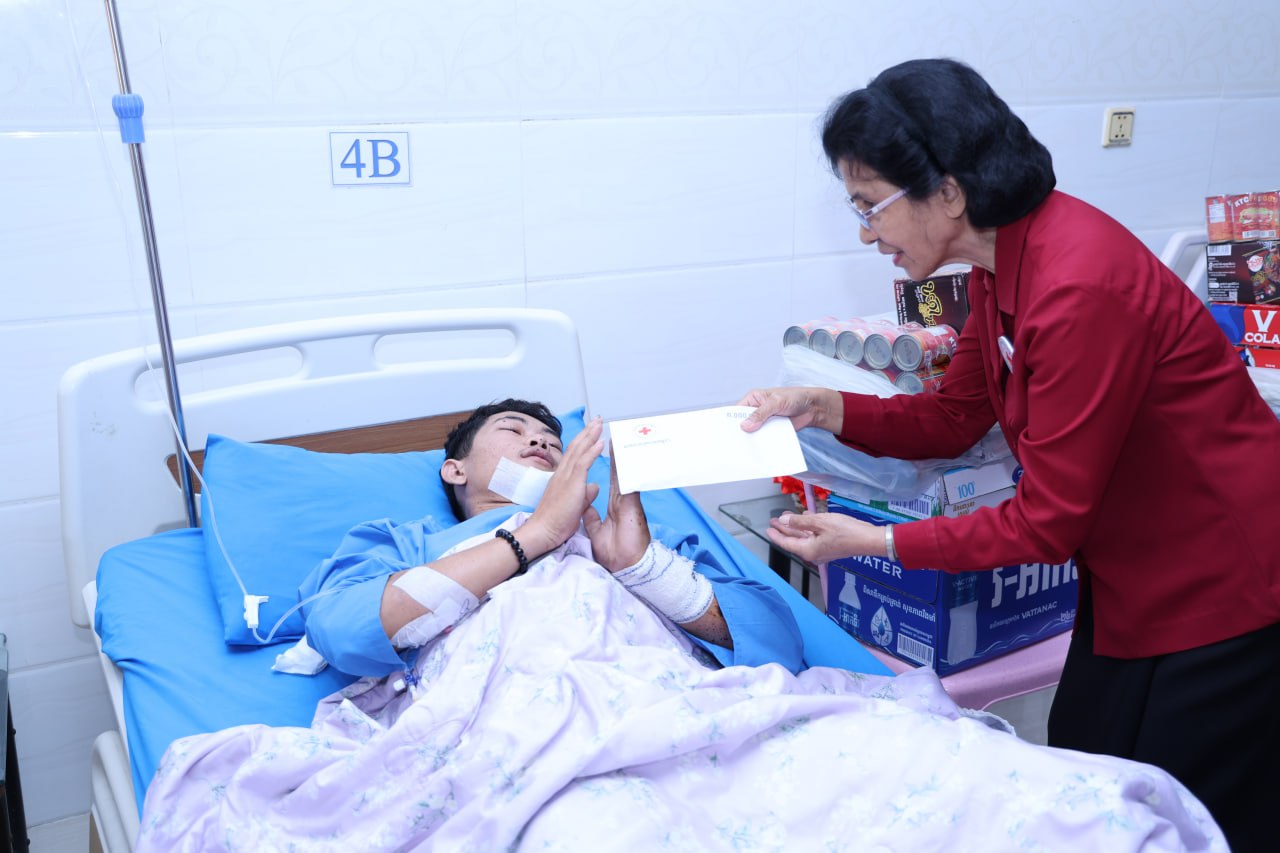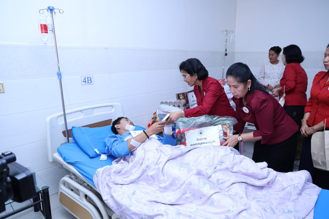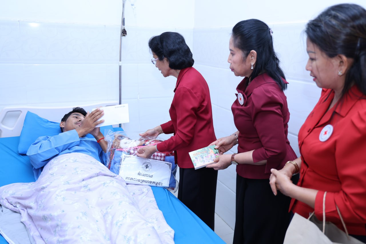 ក្នុងមនោសញ្ចេតនាគោរពស្រឡាញ់ និងជួយសម្រាលការលំបាកចំពោះយោធិន ដែលមានជំងឺ នៅរសៀលថ្ងៃច័ន្ទ ទី២០ ខែមេសាឆ្នាំ២០២៦ សម្តេចកិត្តិព្រឹទ្ធបណ្ឌិត ប៊ុនរ៉ានី ហ៊ុនសែន ប្រធានកាកបាទក្រហមកម្ពុជា បានចាត់លោកជំទាវ ពុំ ចន្ទីនី អគ្គលេខាធិការកាកបាទក្រហមកម្ពុជា និងសហការី អញ្ជើញសួរសុខទុក្ខ និងនាំយកអំណោយមនុស្សធម៌ ផ្តល់ជូនយោធិនមានជំងឺ ដែលកំពុងសម្រាកព្យាបាលនៅមន្ទីរពេទ្យព្រះកេតុមាលា ក្នុងរាជធានីភ្នំពេញ។