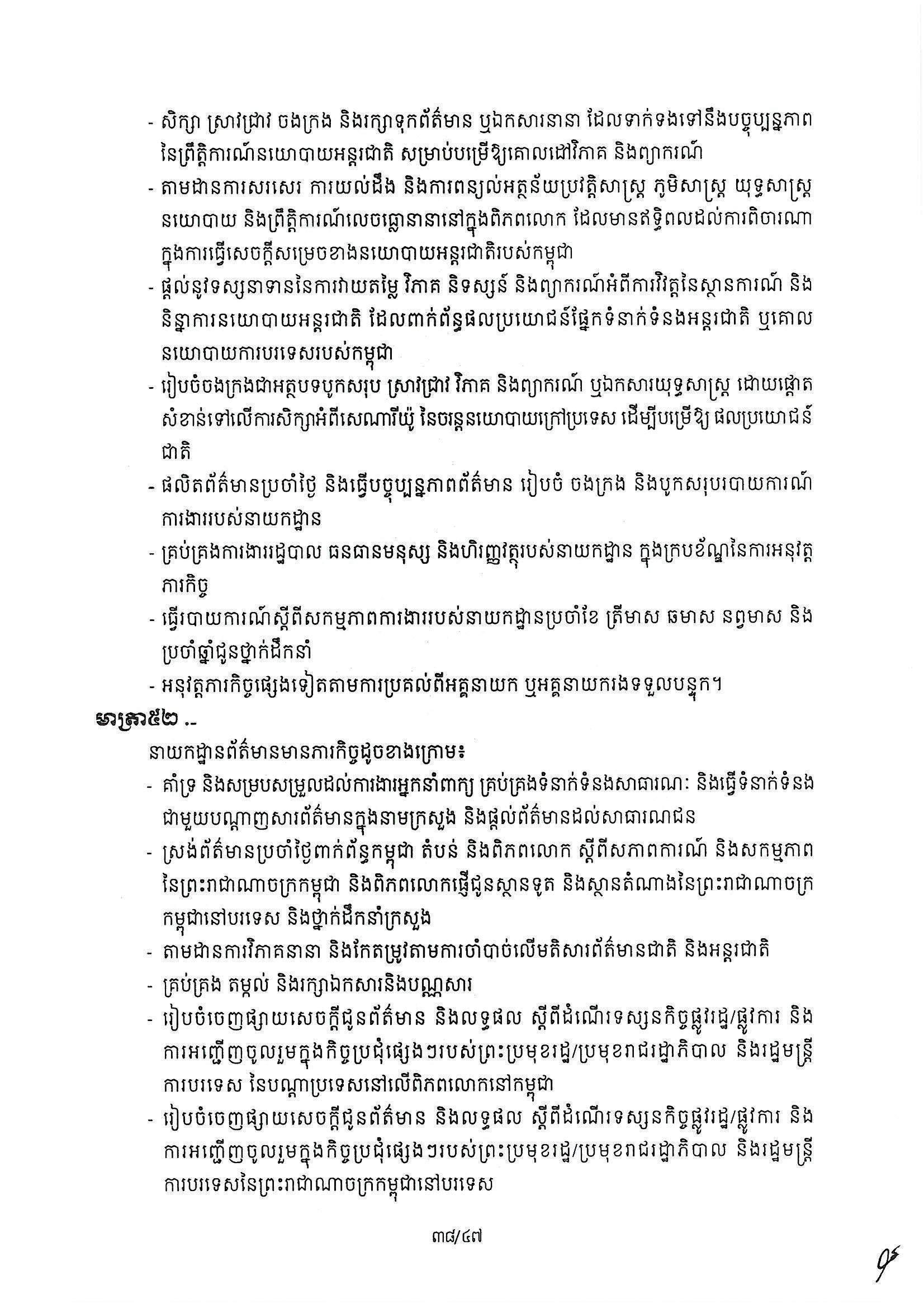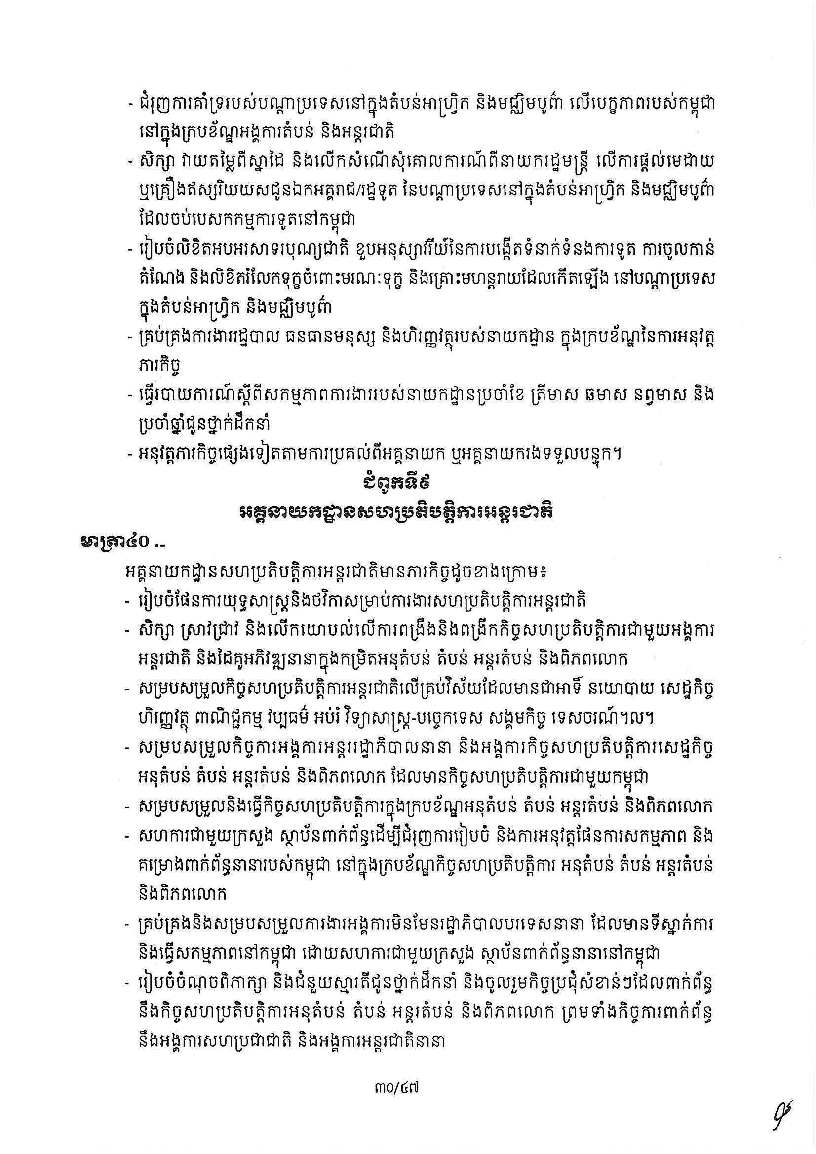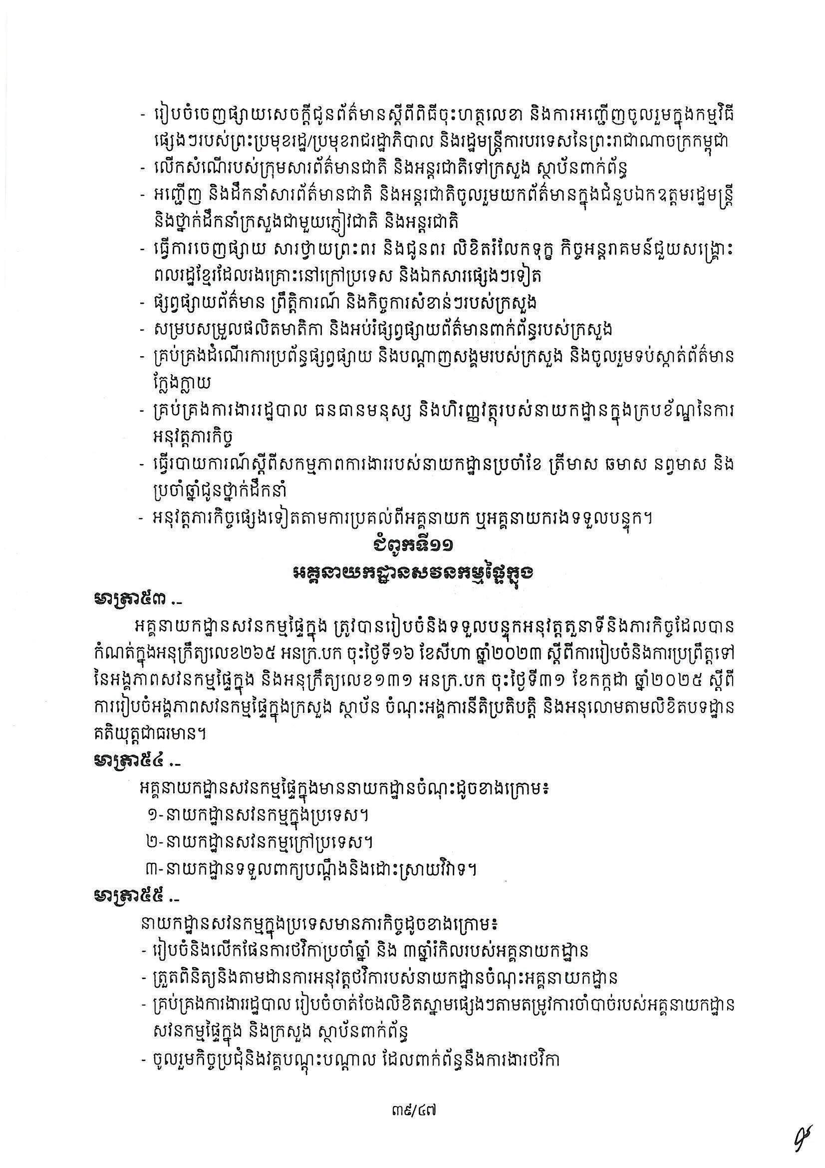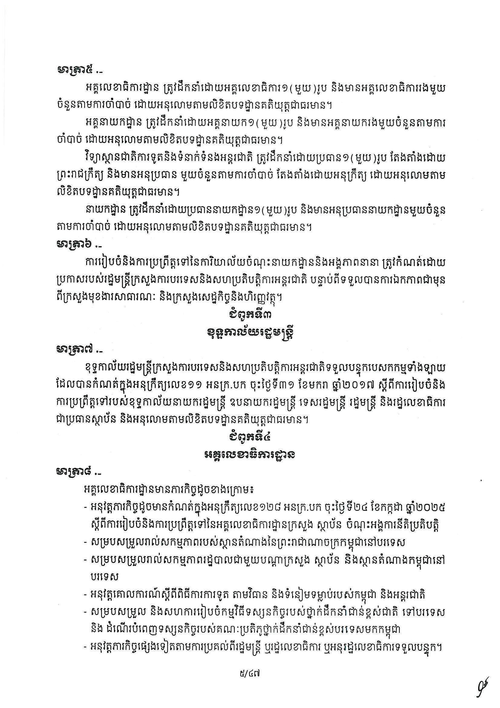 សម្តេចធិបតី ហ៊ុន ម៉ាណែត នាយករដ្ឋមន្ត្រីកម្ពុជា បានចេញអនុក្រឹត្យ ស្ដីពីការរៀបចំ និងការប្រព្រឹត្តទៅរបស់ក្រសួងការបរទេស និងសហប្រតិបត្តិការអន្តជាតិ។