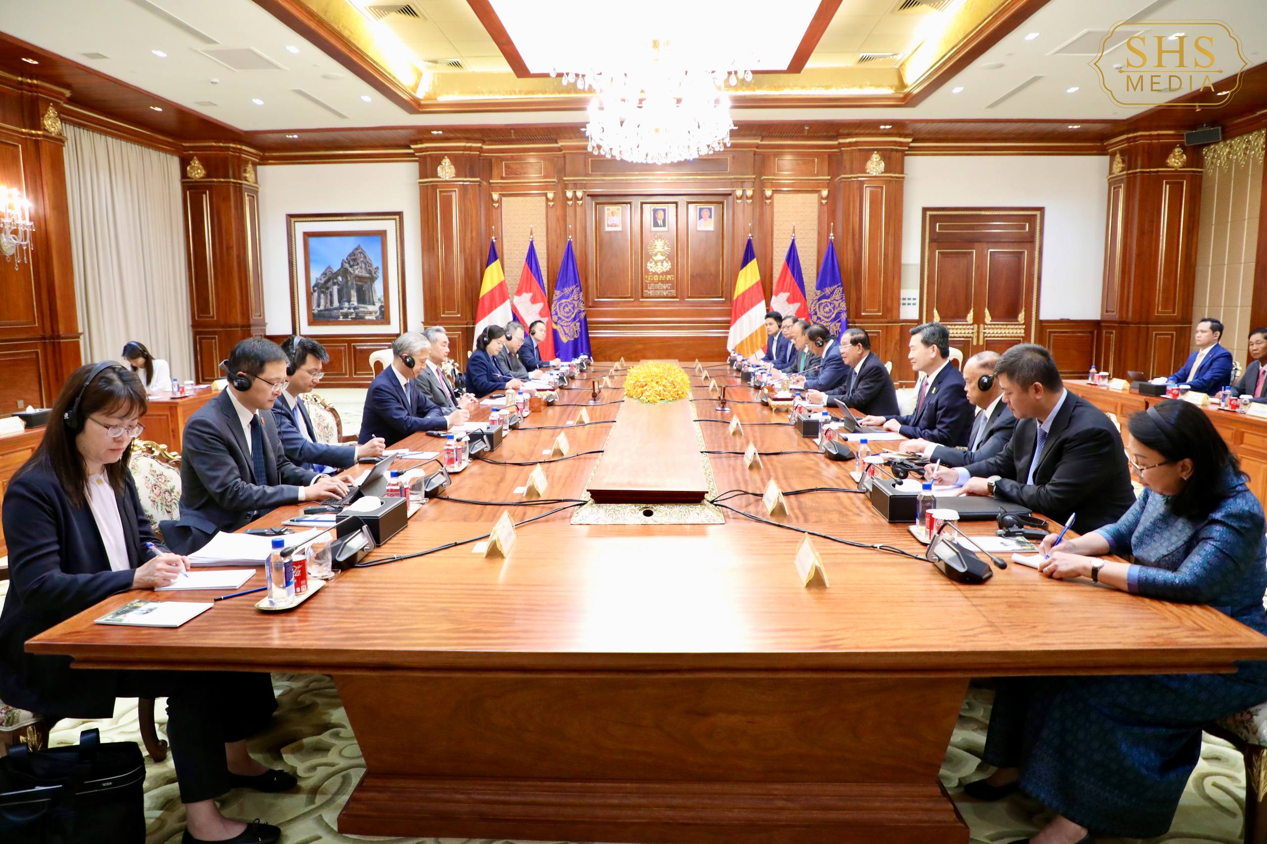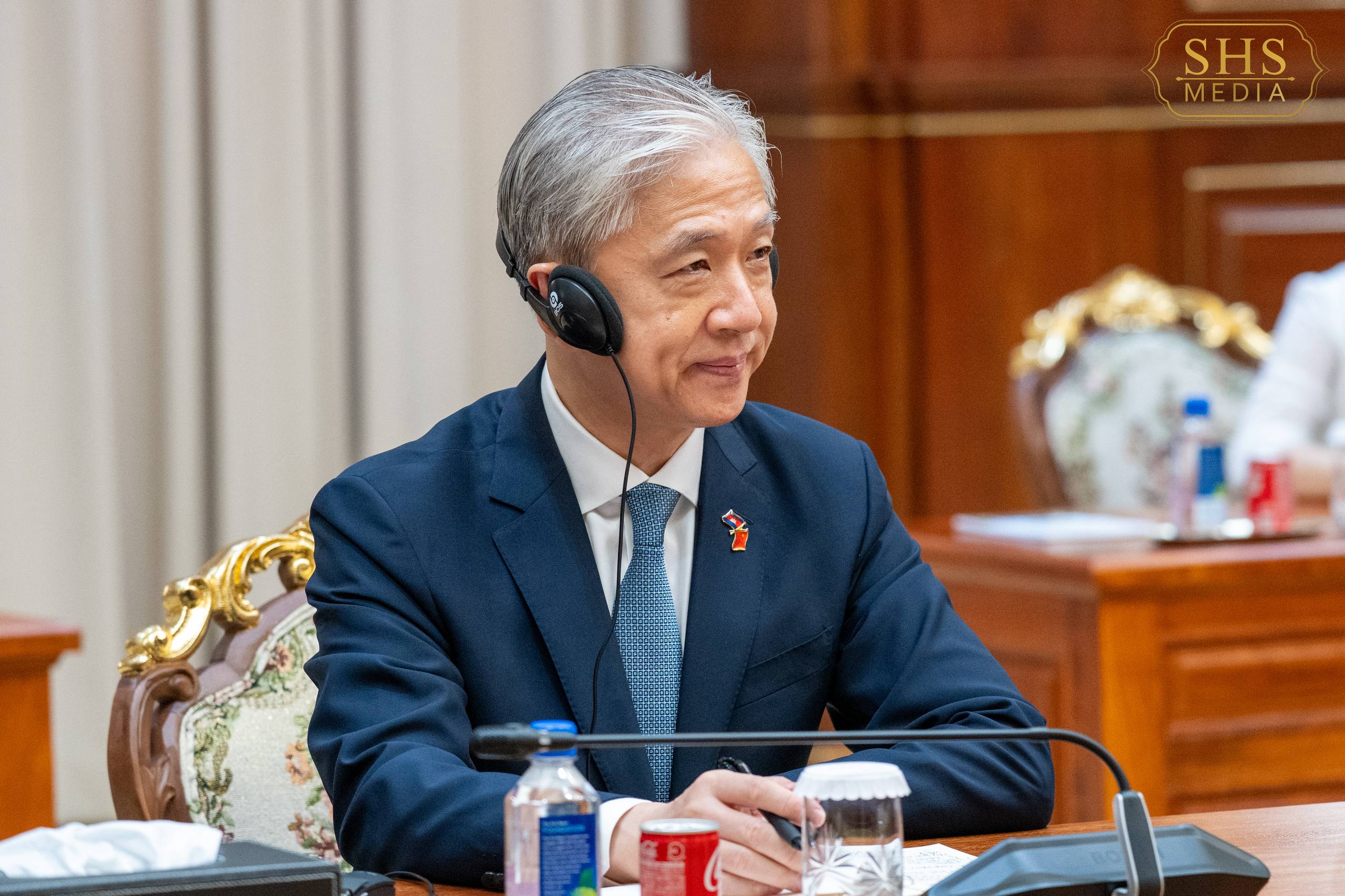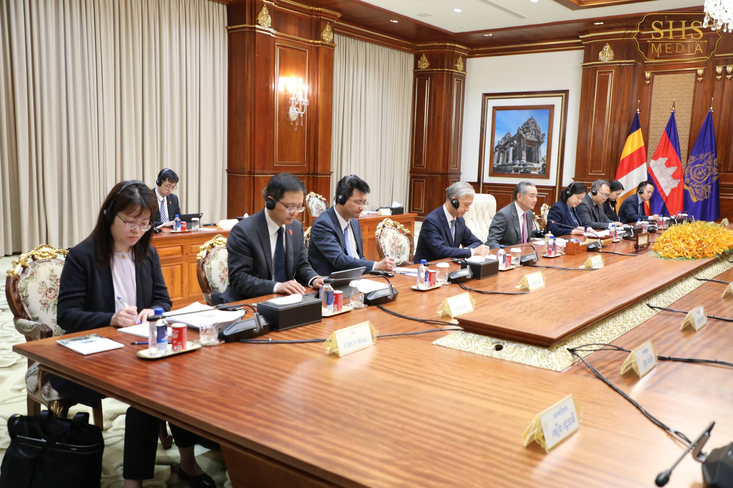 សម្តេចអគ្គមហាសេនាបតីតេជោ ហ៊ុន សែន ប្រមុខរដ្ឋស្តីទីនៃព្រះរាជាណាចក្រកម្ពុជា អនុញ្ញាតឱ្យ ឯកឧត្តម វ៉ាង យី (Wang Yi) រដ្ឋមន្ត្រីការបរទេស នៃសាធារណរដ្ឋប្រជាមានិតចិន និងគណៈប្រតិភូ ចូលជួបសម្ដែងការគួរសម នៅវិមានសាមគ្គីភាពនៃព្រឹទ្ធសភាជាតិ រាជធានីភ្នំពេញ នាព្រឹកថ្ងៃពុធ ៧កើត ខែពិសាខ ឆ្នាំមមី អដ្ឋស័ក ព.ស.២៥៦៩ ត្រូវនឹងថ្ងៃទី២៣ ខែមេសា ឆ្នាំ២០២៦។