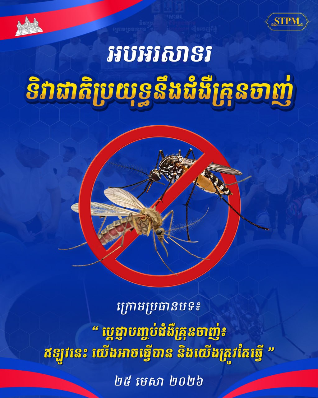 ប្រធានបទនៃទិវាជាតិប្រយុទ្ធនឹងជំងឺគ្រុនចាញ់ ថ្ងៃទី២៥ ខែមេសា ឆ្នាំ២០២៦ និងសមិទ្ធផលដែលព្រះរាជាណាចក្រកម្ពុជា សម្រេចបាននាពេលនេះ ពិតជាបានឆ្លុះបញ្ចាំង និងបង្ហាញឱ្យឃើញយ៉ាងច្បាស់ថា ការលុបបំបាត់ជំងឺគ្រុនចាញ់ គឺយើងពិតជាអាចធ្វើបាន និងត្រូវតែធ្វើទាំងអស់គ្នា ទាំងបុគ្គល គ្រួសារ និងសហគមន៍នៅគ្រប់កម្រិត ព្រមទាំងការសហការពីគ្រប់ភាគី ទាំងកម្រិតជាតិ និងអន្តរជាតិ។