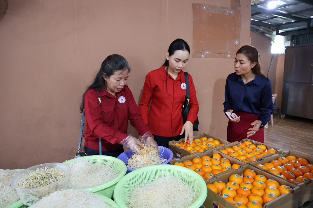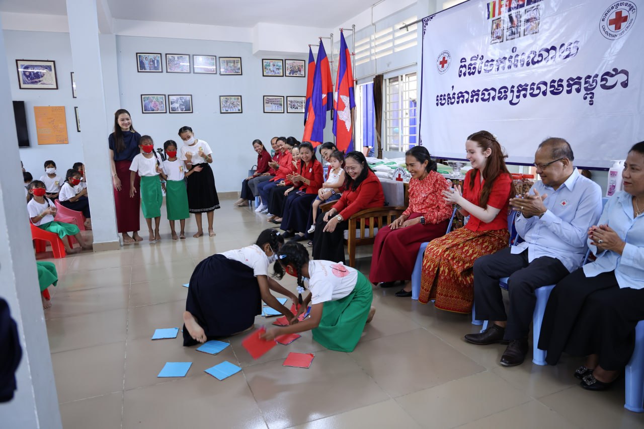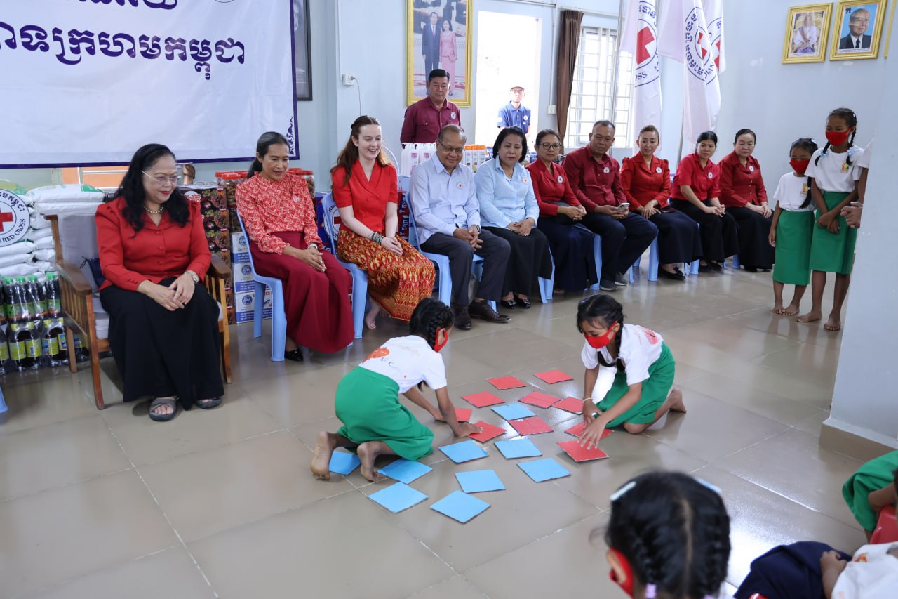 លោកជំទាវបានបន្តថា ដើម្បីជួយសម្រាលការលំបាក និងគាំទ្រដល់ការហូបចុក កាកបាទក្រហមកម្ពុជាបានផ្ដល់ជូននូវគ្រឿងឧបភោគបរិភោគ៖ អង្ករ ២តោន, អង្ករសុខភាព ១០កេស, មី ២០កេស, ត្រីខ ៣កេស, ប្រេងឆា ៣កេស, ឆៃពៅ ២០កំប៉ុង, ទឹកត្រី ១០យួរ, ទឹកស៊ីអ៊ីវ ១០យួរ, ទឹកបរិសុទ្ធ ១០កេស និងទឹកក្រូច ១០កេស។ ចំពោះសម្ភារអនាម័យមានសាប៊ូកក់សក់ ៤កេស, សាប៊ូដុសខ្លួន ៤កេស និងម៉្សៅសាប៊ូ ៤កេស ។បន្ថែមពីនេះមានថវិកាចំនួន ១០,០០០,០០០រៀល ព្រមទាំងអាហារសម្រន់មួយពេលយ៉ាងឈ្ងុយឆ្ងាញ់ផងដែរ៕