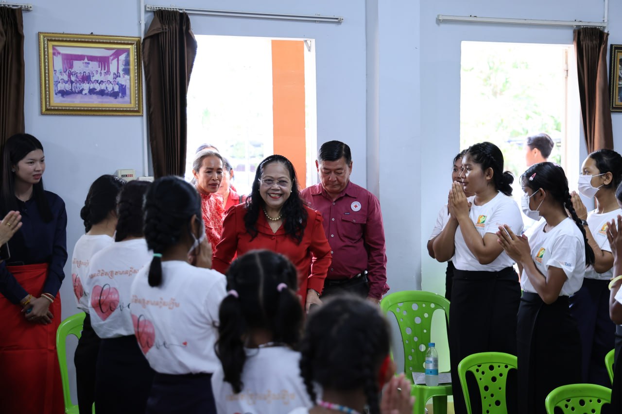នាឳកាសសំណេះសំណាលនោះលោកជំទាវ ម៉ែន នារីសោភ័គ អគ្គលេខាធិការរងទី១ កាកបាទក្រហមកម្ពុជា បានពាំនាំនូវប្រសាសន៍សួរសុខទុក្ខ និងក្តីនឹករលឹកពីសំណាក់សម្តេចកិត្តិព្រឹទ្ធបណ្ឌិត ជូនដល់ក្មួយៗទាំងអស់ ដោយបានសង្កត់ធ្ងន់ថា៖