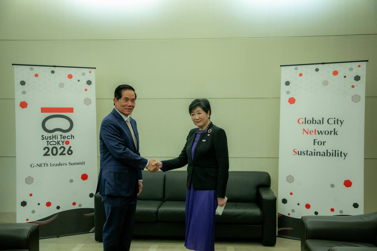ឯកឧត្តម ឃួង ស្រេង អភិបាលរាជធានីភ្នំពេញ នារសៀលថ្ងៃទី២៧ ខែមេសា ឆ្នាំ២០២៦ បានអញ្ជើញចូលជួបពិភាក្សាការងារជាមួយលោកស្រី យូរីកូ កូអ៉ីកេ អភិបាលក្រុងតូក្យូ ក្នុងឱកាសដែលលោកអញ្ជើញបំពេញទស្សនកិច្ចផ្លូវការ និងចូលរួមកិច្ចប្រជុំកំពូលលើកទី៣ នៃបណ្តាញទីក្រុង សកលសម្រាប់ចីរភាព (3rd G-NETS Leaders Summit) នៅទីក្រុងតូក្យូ ប្រទេសជប៉ុន។