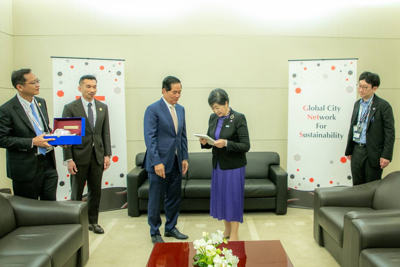 អភិបាលរាជធានីភ្នំពេញ ជួបពិភាក្សាការងារជាមួយអភិបាលក្រុងតូក្យូ ក្នុងឱកាសអញ្ជើញបំពេញទស្សនកិច្ចផ្លូវការ និងចូលរួមកិច្ចប្រជុំកំពូលលើកទី៣ នៃបណ្តាញទីក្រុង សកលសម្រាប់ចីរភាព