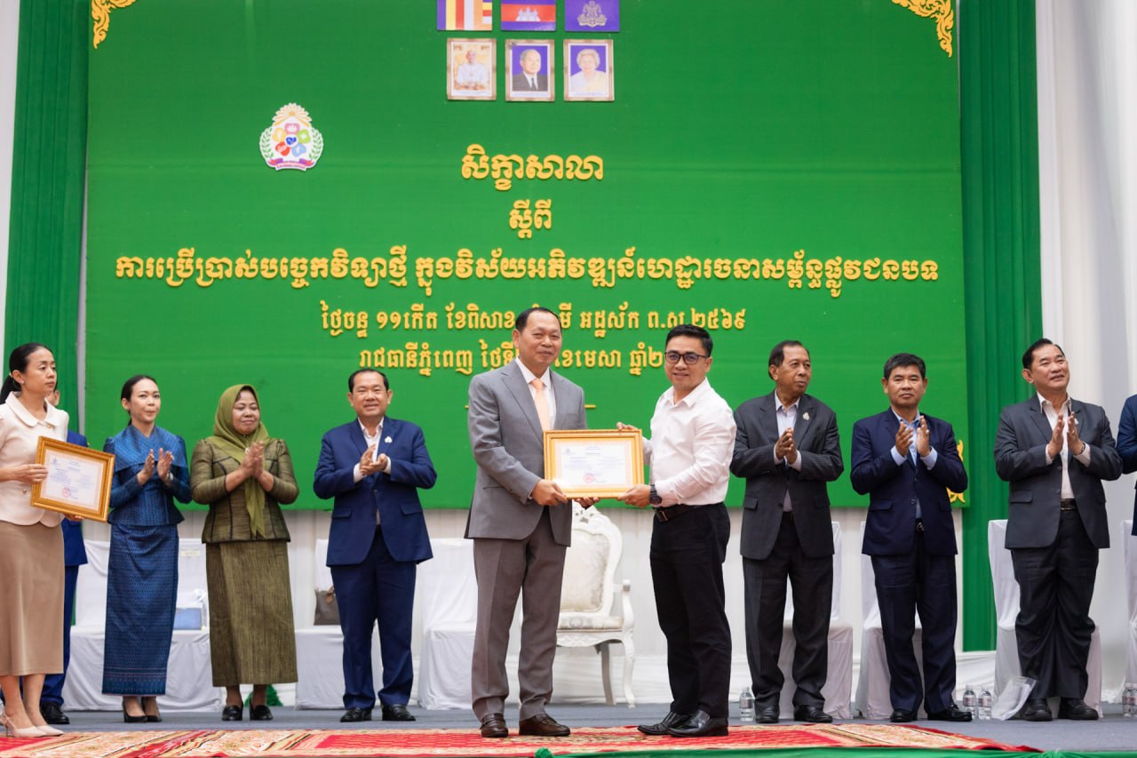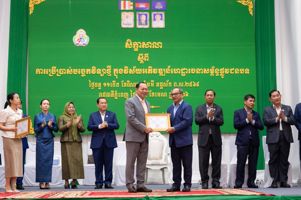 ជាចុងក្រោយ ឯកឧត្តមរដ្ឋមន្ត្រី បានអញ្ជើញផ្ដល់កិត្តិយសចែកលិខិតថ្លែងអំណរគុណជូនដល់តំណាងក្រុមហ៊ុនដែលបានធ្វើបទបង្ហាញជូនដល់អង្គសិក្ខាសាលា៕