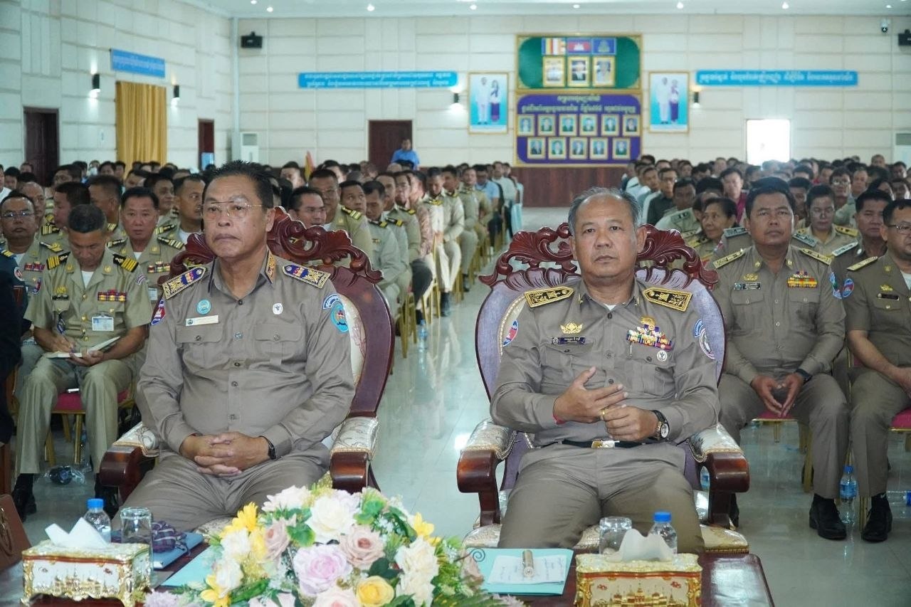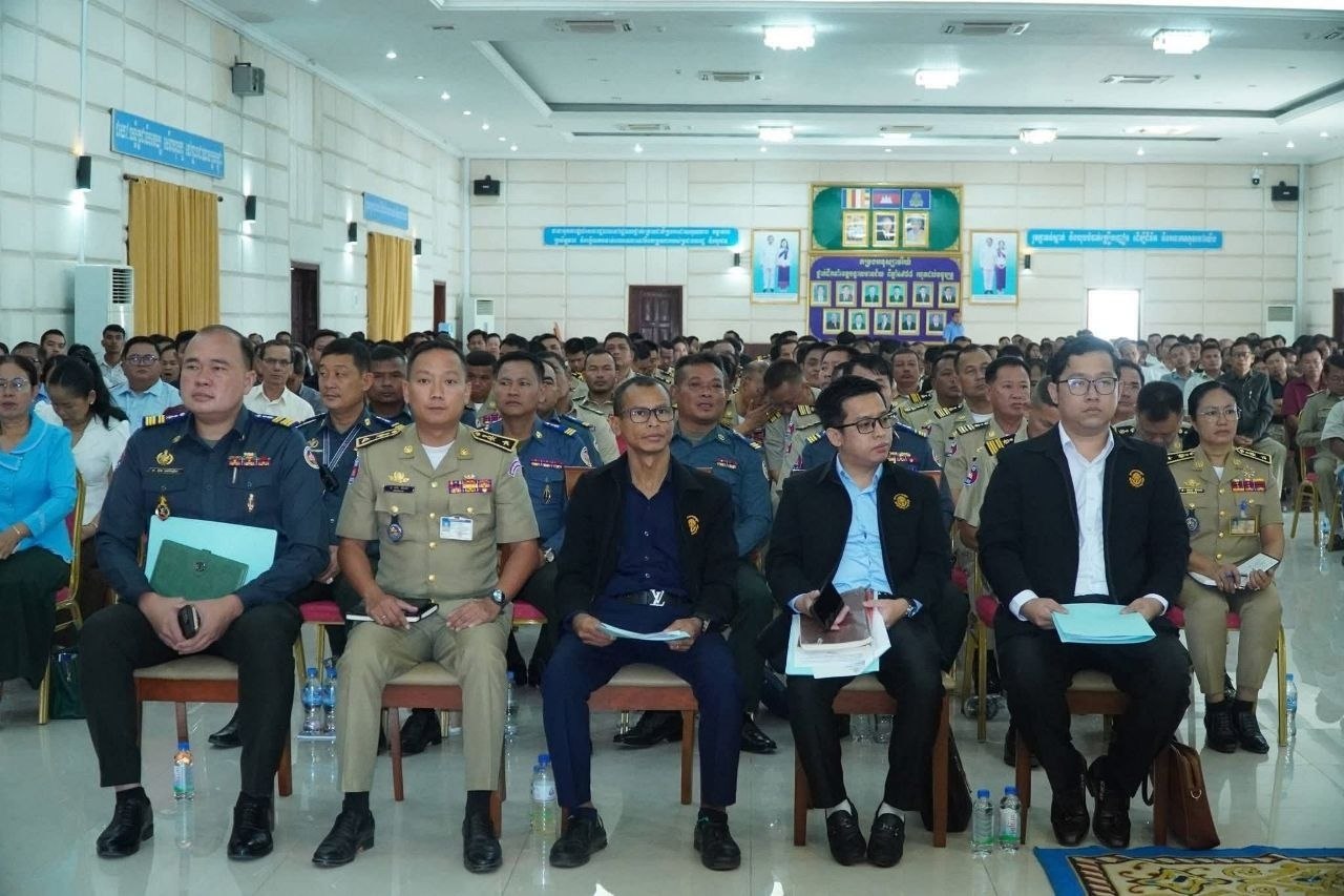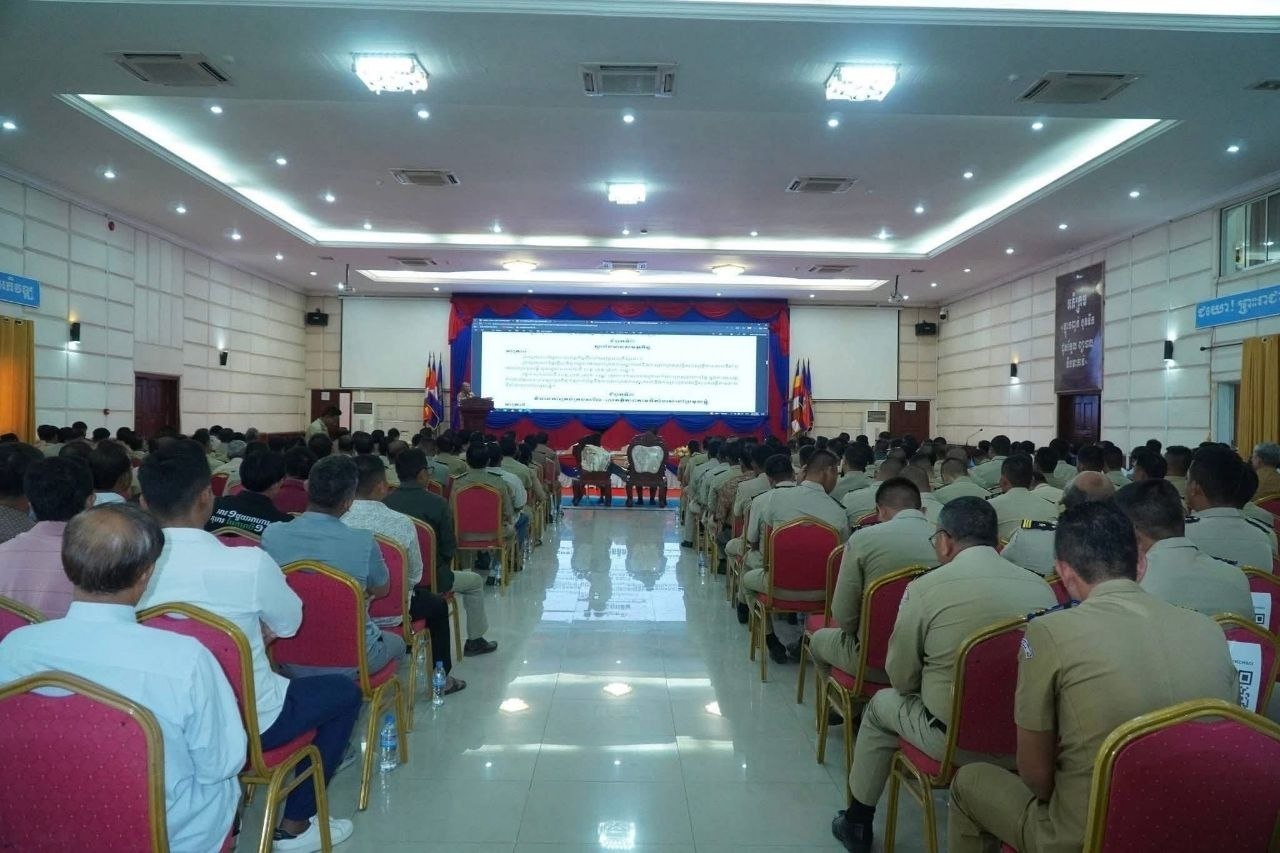 (បន្ទាយមានជ័យ)៖ នាព្រឹកថ្ងៃទី២៩ ខែមេសា ឆ្នាំ២០២៦ រដ្ឋបាលខេត្តបន្ទាយមានជ័យ បានបើកកិច្ចប្រជុំស្ដីពីការផ្សព្វផ្សាយច្បាប់ប្រឆាំងការឆបោកតាមប្រព័ន្ធបច្ចេកវិទ្យា (Online Scams) និងក្រឹត្យលេខ០៣ អនក្រ.បក ចុះថ្ងៃទី៥ ខែមករា ឆ្នាំ២០២៦ របស់រាជរដ្ឋាភិបាលកម្ពុជា ស្តីពីការពង្រឹងសមត្ថភាពពាក់ព័ន្ធនឹងការគ្រប់គ្រងសន្តិសុខ សុវត្ថិភាព នៅតាមទីតាំងរស់នៅប្រមូលផ្ដុំរបស់ជនបរទេស។