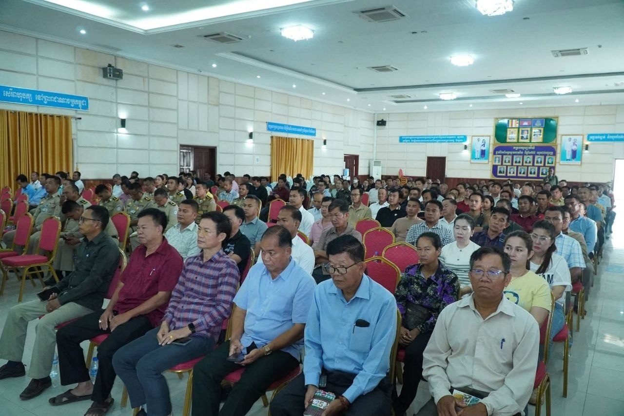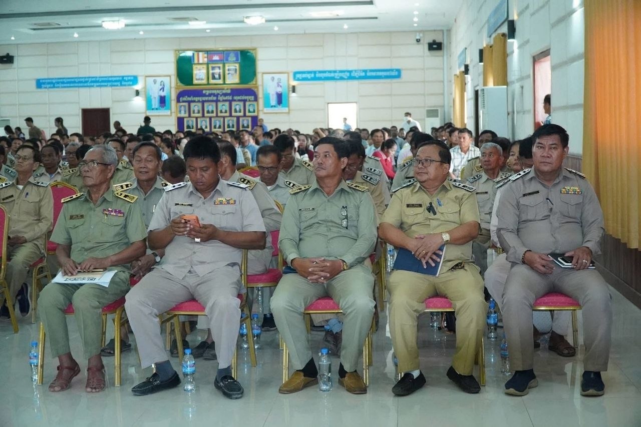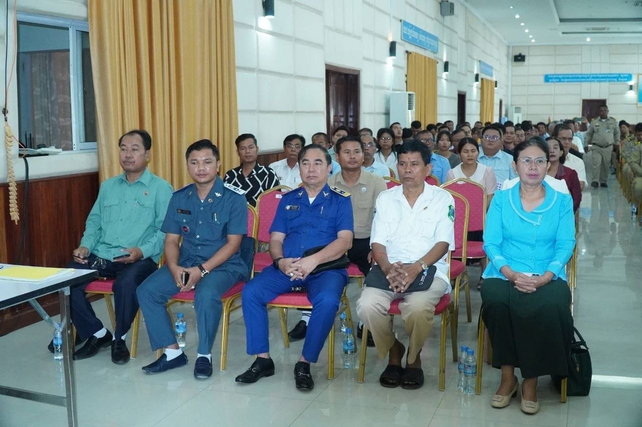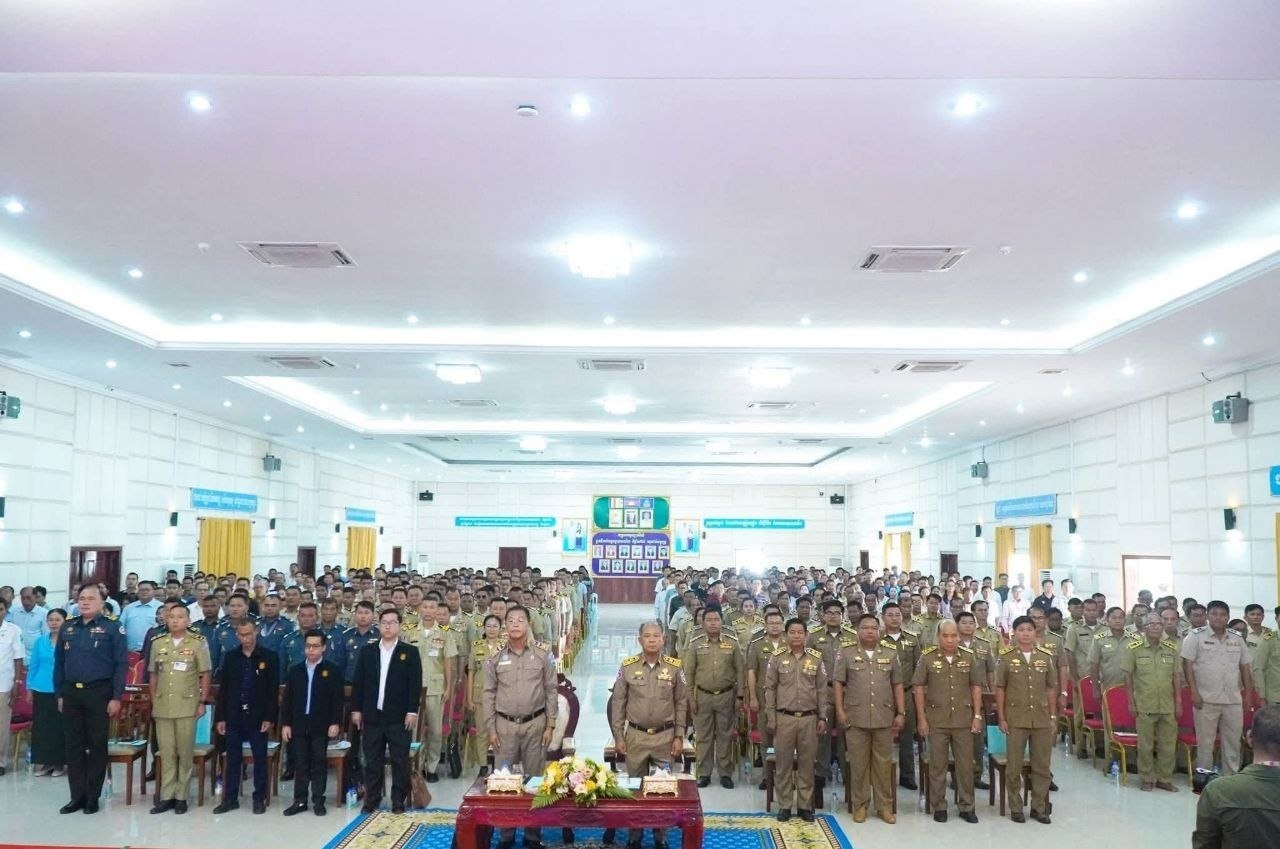 (បន្ទាយមានជ័យ)៖ នាព្រឹកថ្ងៃទី២៩ ខែមេសា ឆ្នាំ២០២៦ រដ្ឋបាលខេត្តបន្ទាយមានជ័យ បានបើកកិច្ចប្រជុំស្ដីពីការផ្សព្វផ្សាយច្បាប់ប្រឆាំងការឆបោកតាមប្រព័ន្ធបច្ចេកវិទ្យា (Online Scams) និងក្រឹត្យលេខ០៣ អនក្រ.បក ចុះថ្ងៃទី៥ ខែមករា ឆ្នាំ២០២៦ របស់រាជរដ្ឋាភិបាលកម្ពុជា ស្តីពីការពង្រឹងសមត្ថភាពពាក់ព័ន្ធនឹងការគ្រប់គ្រងសន្តិសុខ សុវត្ថិភាព នៅតាមទីតាំងរស់នៅប្រមូលផ្ដុំរបស់ជនបរទេស។