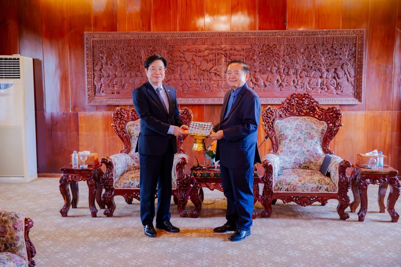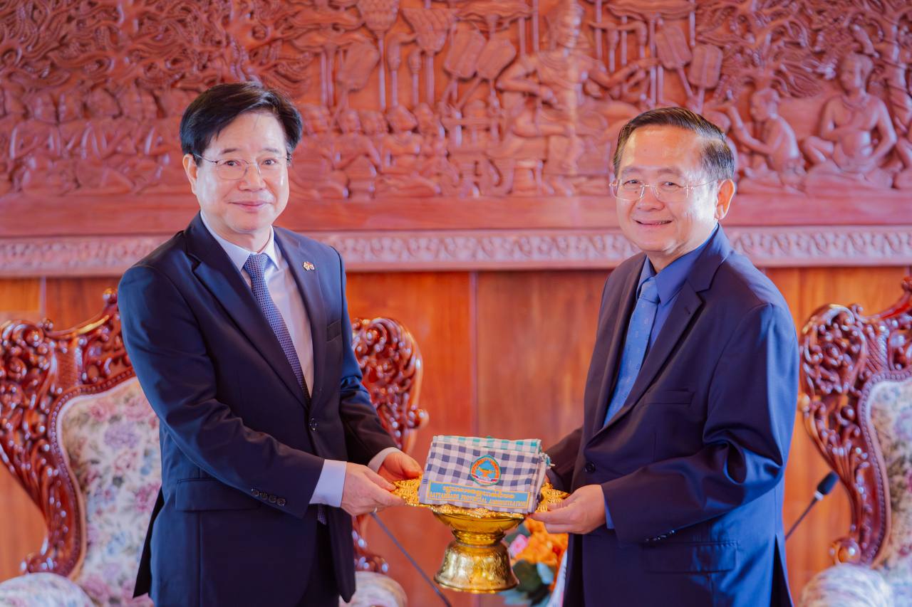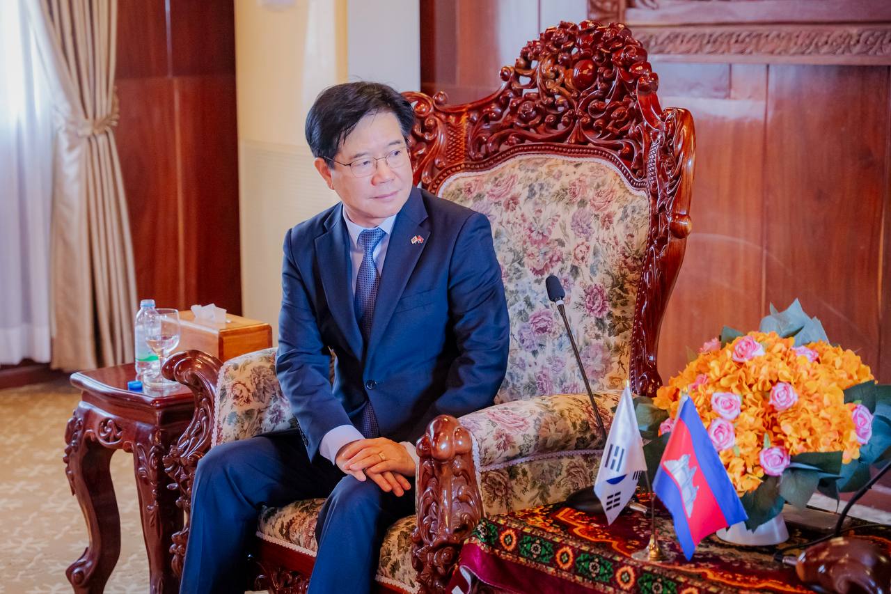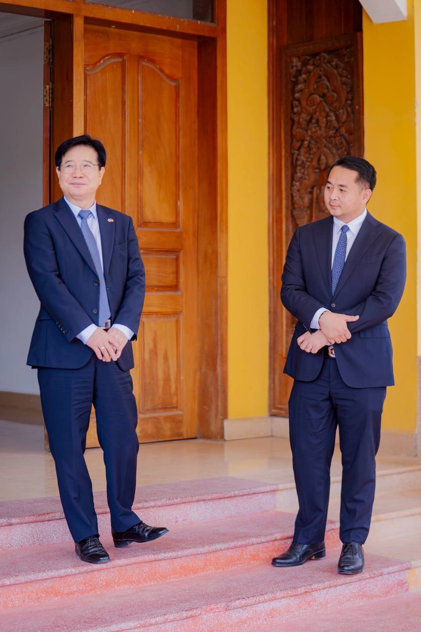 (បាត់ដំបង)៖ ឯកឧត្តម សុខ លូ អភិបាលខេត្តបាត់ដំបង នាថ្ងៃទី២៩ ខែមេសា ឆ្នាំ២០២៦ បានទទួលជួបសម្ដែងការគួរសម និងពិភាក្សាការងារជាមួយឯកឧត្តម គីម ឆាងយ៉ុង (KIM CHANGYONG) ឯកអគ្គរដ្ឋទូតសាធារណរដ្ឋកូរ៉េប្រចាំកម្ពុជា។ ភាគីទាំងពីរបានពិភាក្សាលើការងារសំខាន់ៗរួមមាន ស្ថានភាពព្រំដែន ការងារបង្រ្កាបបទល្មើសស្គែមអនឡាញ និងការពង្រឹងកិច្ចសហប្រតិបត្តិការកម្ពុជា-កូរ៉េ ។