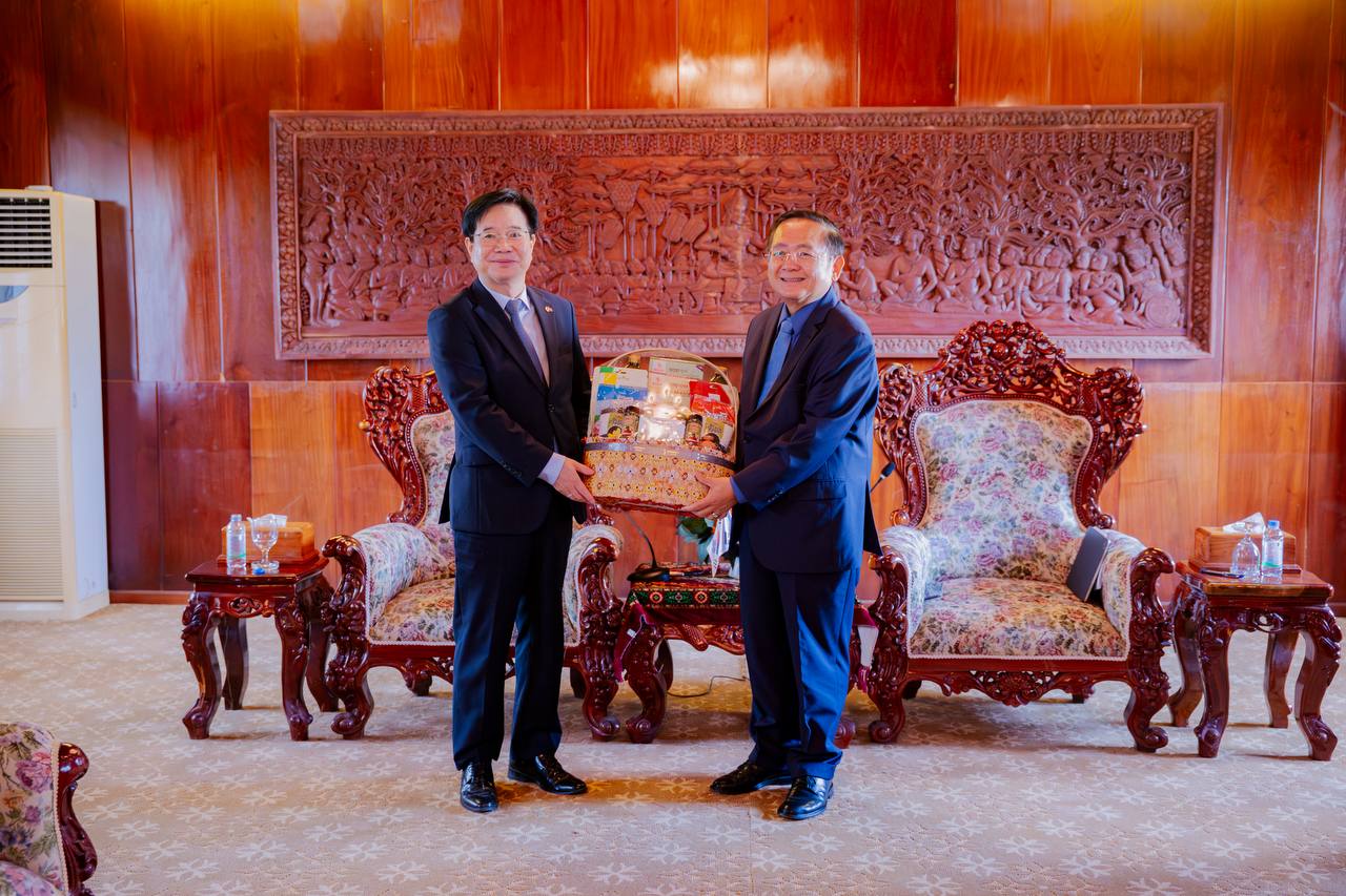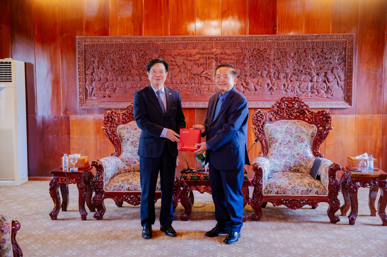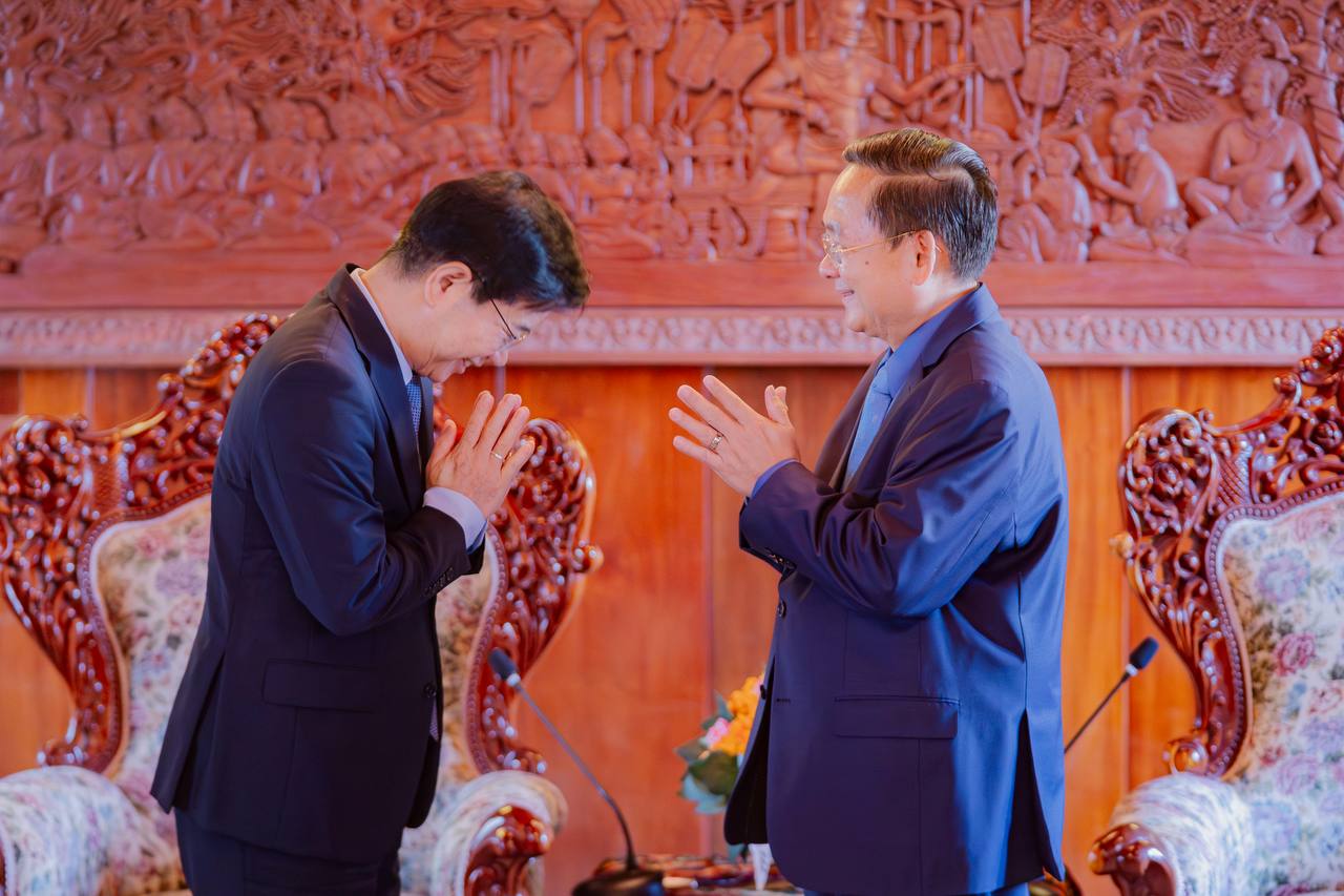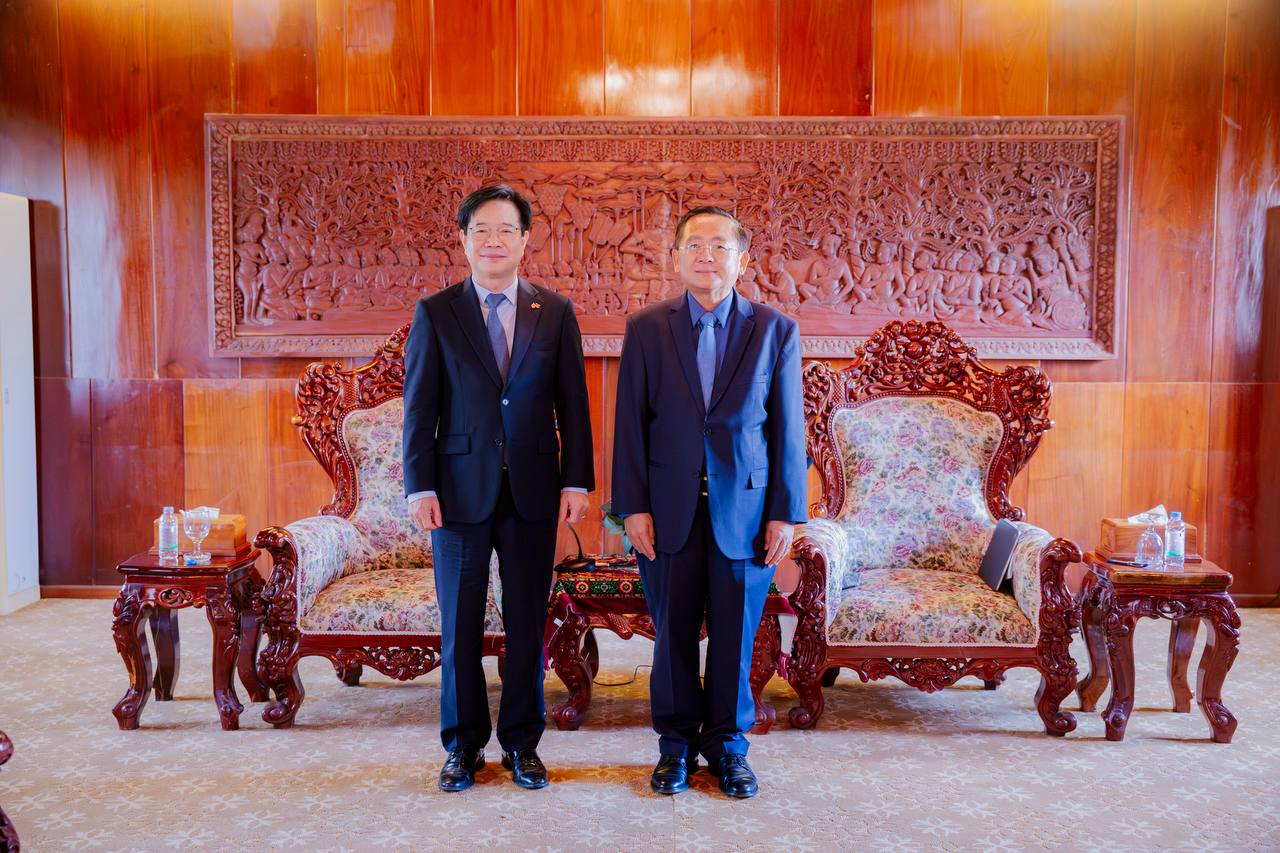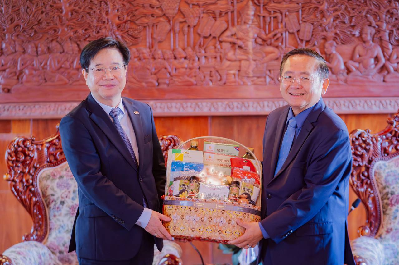 (បាត់ដំបង)៖ ឯកឧត្តម សុខ លូ អភិបាលខេត្តបាត់ដំបង នាថ្ងៃទី២៩ ខែមេសា ឆ្នាំ២០២៦ បានទទួលជួបសម្ដែងការគួរសម និងពិភាក្សាការងារជាមួយឯកឧត្តម គីម ឆាងយ៉ុង (KIM CHANGYONG) ឯកអគ្គរដ្ឋទូតសាធារណរដ្ឋកូរ៉េប្រចាំកម្ពុជា។ ភាគីទាំងពីរបានពិភាក្សាលើការងារសំខាន់ៗរួមមាន ស្ថានភាពព្រំដែន ការងារបង្រ្កាបបទល្មើសស្គែមអនឡាញ និងការពង្រឹងកិច្ចសហប្រតិបត្តិការកម្ពុជា-កូរ៉េ ។