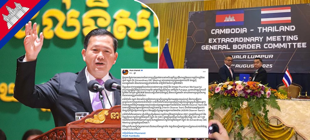 សម្ដេចមហាបវរធិបតី ហ៊ុន ម៉ាណែត៖ កិច្ចប្រជុំ GBC នៅម៉ាឡេស៉ី បានប្រព្រឹត្តទៅដោយជោគជ័យ, កម្ពុជា-ថៃ ឯកភាពគ្នាលើលក្ខខណ្ឌ នៃការអនុវត្តបទឈប់បាញ់ និងបង្កើនការប្រាស្រ័យទាក់ទងគ្នារវាងកងទ័ពទាំងពីរ Posted on ថ្ងៃព្រហស្បតិ៍, 7 ខែសីហា, 2025ថ្ងៃព្រហស្បតិ៍, 7 ខែសីហា, 2025
