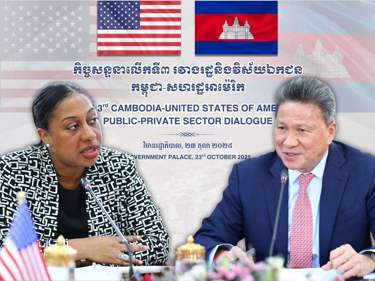 កិច្ចសន្ទនាលើកទី៣ រវាងរដ្ឋ និងវិស័យឯកជន, កម្ពុជា-សហរដ្ឋអាម៉េរិក បង្ហាញការយកចិត្តទុកដាក់ខ្ពស់ ក្នុងការប្រើប្រាស់យន្តការថែទាំវិនិយោគបរទេសនៅកម្ពុជា Posted on ថ្ងៃព្រហស្បតិ៍, 23 ខែតុលា, 2025ថ្ងៃព្រហស្បតិ៍, 23 ខែតុលា, 2025