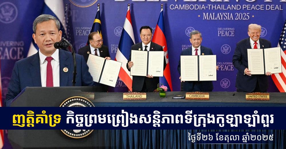 ក្រុមប្រឹក្សា និងរដ្ឋបាលរាជធានីភ្នំពេញ ប្រកាសគាំទ្រកិច្ចព្រមព្រៀងសន្តិភាពកម្ពុជា-ថៃ និងអបអរសាទរជូនចំពោះ សម្តេចមហាបវរធិបតី ហ៊ុន ម៉ាណែត ដែលសម្រេចបាននូវកិច្ចការដ៏មានតម្លៃជាប្រវត្តិសាស្រ្ត Posted on ថ្ងៃអង្គារ, 28 ខែតុលា, 2025ថ្ងៃអង្គារ, 28 ខែតុលា, 2025