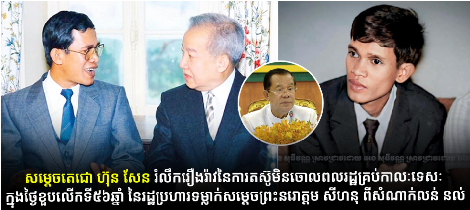 សម្ដេចតេជោ ហ៊ុន សែន រំលឹករឿងរ៉ាវនៃការតស៊ូមិនចោលពលរដ្ឋគ្រប់កាលៈទេសៈ ក្នុងថ្ងៃខួបលើកទី៥៦ឆ្នាំ នៃរដ្ឋប្រហារទម្លាក់សម្ដេចព្រះនរោត្តម សីហនុ ពីសំណាក់លន់ នល់ Posted on ថ្ងៃពុធ, 18 ខែមីនា, 2026ថ្ងៃពុធ, 18 ខែមីនា, 2026