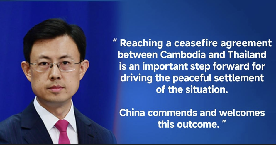 ចិនស្វាគមន៍បទឈប់បាញ់កម្ពុជា-ថៃ ជាការបោះជំហានទៅសន្តិភាព Posted on ថ្ងៃពុធ, 30 ខែកក្កដា, 2025ថ្ងៃពុធ, 30 ខែកក្កដា, 2025