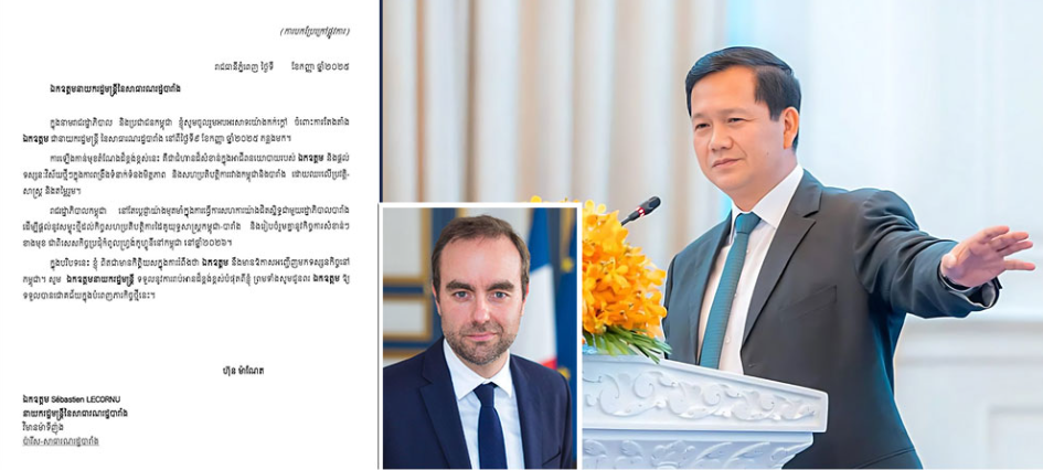 សម្តេចបវរធិបតី ហ៊ុន ម៉ាណែត ផ្ញើសារលិខិតអបអរសាទរឯកឧត្តម Sébastien LECORNU ដែលត្រូវបានតែងតាំងជានាយករដ្ឋមន្ត្រីបារាំង Posted on ថ្ងៃចន្ទ, 15 ខែកញ្ញា, 2025ថ្ងៃចន្ទ, 15 ខែកញ្ញា, 2025