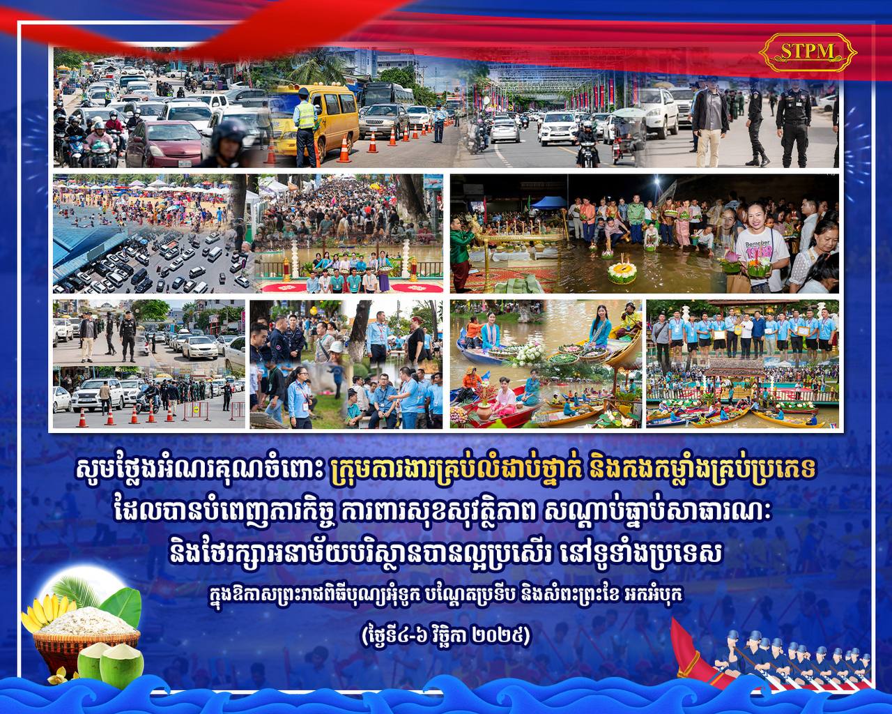 សម្តេចបវរធិបតី ហ៊ុន ម៉ាណែត អរគុណដល់ក្រុមការងារគ្រប់លំដាប់ថ្នាក់ និងកងកម្លាំងគ្រប់ប្រភេទ ដែលបានការពារសន្តិសុខ សណ្តាប់ធ្នាប់ជូនប្រជាពលរដ្ឋ បានយ៉ាងល្អប្រសើរ ក្នុងឱកាសព្រះរាជពិធីបុណ្យអុំទូក ៣ថ្ងៃ Posted on ថ្ងៃសុក្រ, 7 ខែវិច្ឆិកា, 2025ថ្ងៃសុក្រ, 7 ខែវិច្ឆិកា, 2025