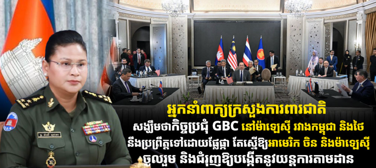 អ្នកនាំពាក្យក្រសួងការពារជាតិ សង្ឃឹមថាកិច្ចប្រជុំ GBC នៅម៉ាឡេស៊ី រវាងកម្ពុជា និងថៃ នឹងប្រព្រឹត្តទៅដោយផ្លែផ្កា តែស្នើឱ្យអាមេរិក ចិន និងម៉ាឡេស៊ី ចូលរួម និងជំរុញឱ្យបង្កើតនូវយន្តការតាមដាន Posted on ថ្ងៃសុក្រ, 1 ខែសីហា, 2025ថ្ងៃសុក្រ, 1 ខែសីហា, 2025