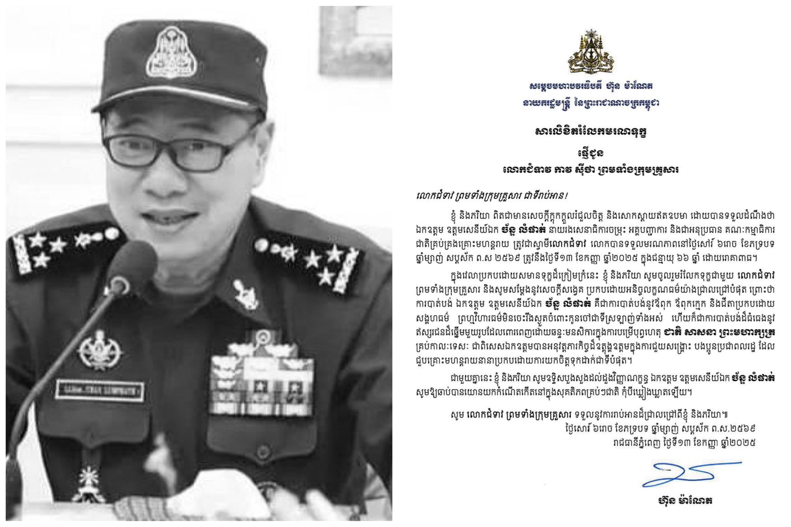 សម្តេចមហាបវរធិបតី ហ៊ុន ម៉ាណែត ផ្ញើសារចូលរួមរំលែកមរណទុក្ខចំពោះមរណភាពឧត្តមសេនីយ៍ឯក ច័ន្ទ លំផាត់ Posted on ថ្ងៃអាទិត្យ, 14 ខែកញ្ញា, 2025ថ្ងៃអាទិត្យ, 14 ខែកញ្ញា, 2025