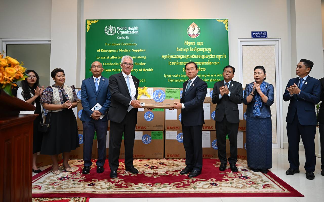 WHO ផ្តល់អំណោយជាឱសថ សម្ភារ: និងបរិក្ខារវេជ្ជសាស្ត្រ ដល់ក្រសួងសុខាភិបាល សម្រាប់ជួយប្រជាពលរដ្ឋរងគ្រោះនៅតាមបណ្តោយព្រំដែន កម្ពុជា-ថៃ Posted on ថ្ងៃសៅរ៍, 9 ខែសីហា, 2025ថ្ងៃសៅរ៍, 9 ខែសីហា, 2025