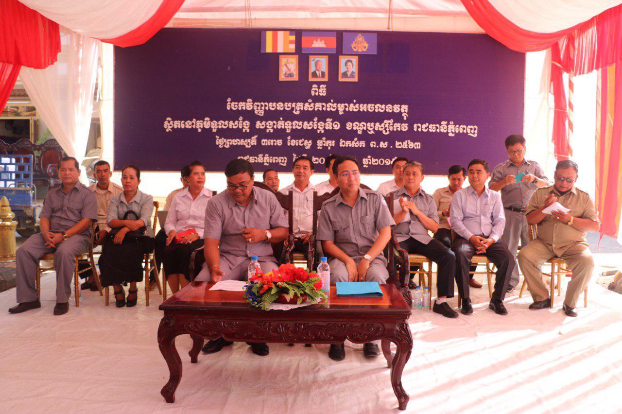ពលរដ្ឋចំនួន១,៣៩៧គ្រួសារ នៅសង្កាត់ទួលសង្កែទី១ ខណ្ឌឫស្សីកែវ ទទួលប័ណ្ណកម្មសិទ្ធិដីធ្លីស្របច្បាប់ Posted on ថ្ងៃព្រហស្បតិ៍, 20 ខែមិថុនា, 2019ថ្ងៃព្រហស្បតិ៍, 20 ខែមិថុនា, 2019