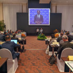 Samdech Akka Moha Ponhea Chakrei Heng Samrin President of the National Assembly of the Kingdom of Cambodia, shakes hands with visiting H.E. Dato’ Seri Anwar bin Ibrahim, prior to their courtesy meeting at the National Assembly Palace in Phnom Penh this afternoon.