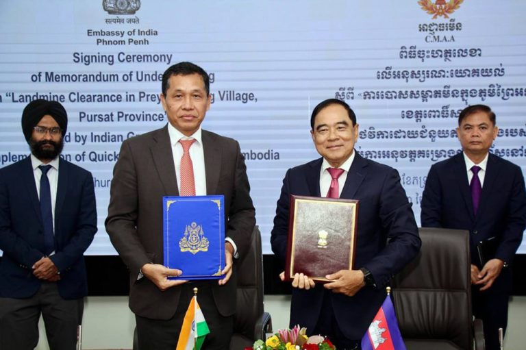 The Cambodian Mine Action and Victim Assistance Authority (CMAA) and the Embassy of India in Cambodia have signed a Memorandum of Understanding (MoU) to continue mine clearance operations, strengthening their commitment to making Cambodia mine-free.