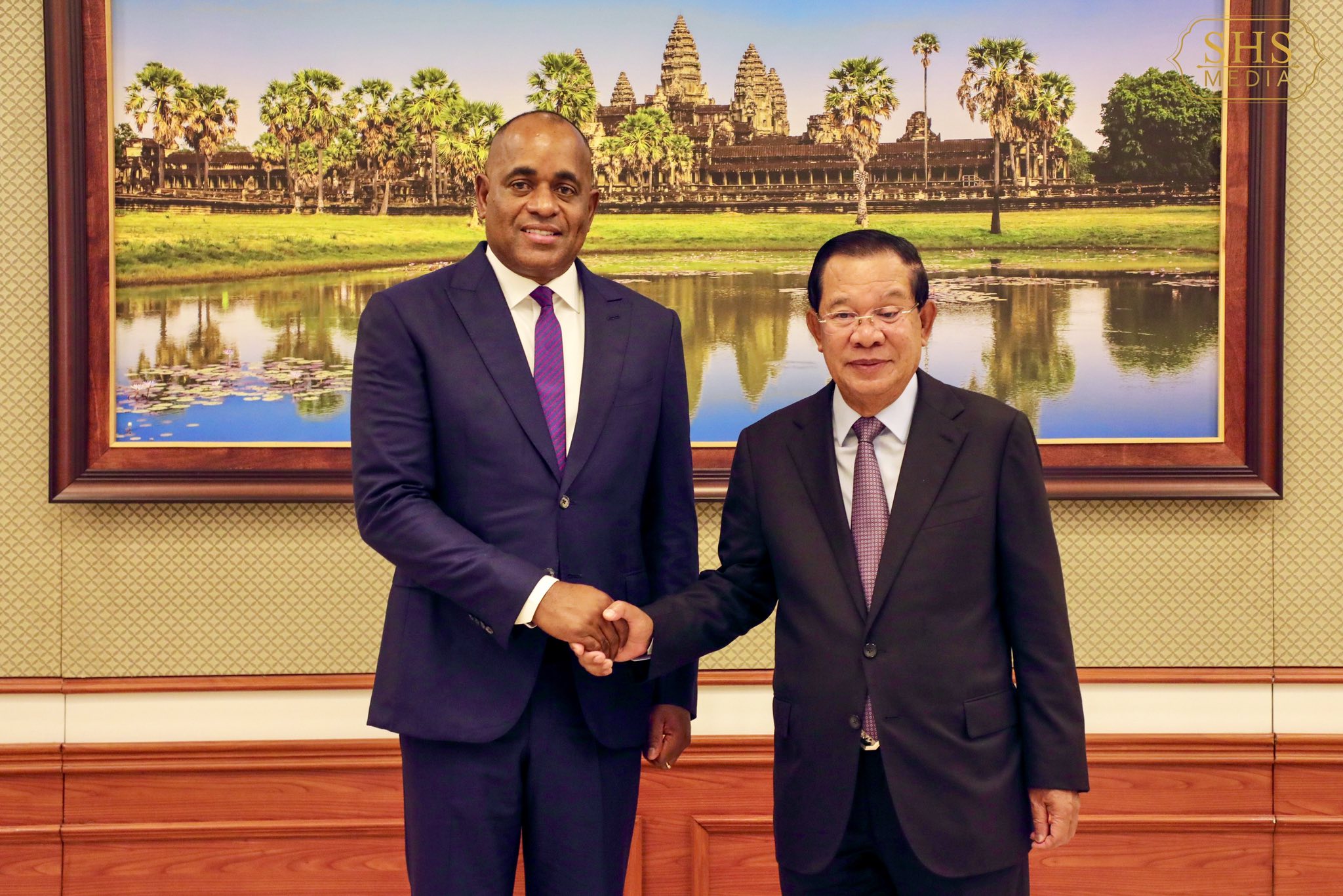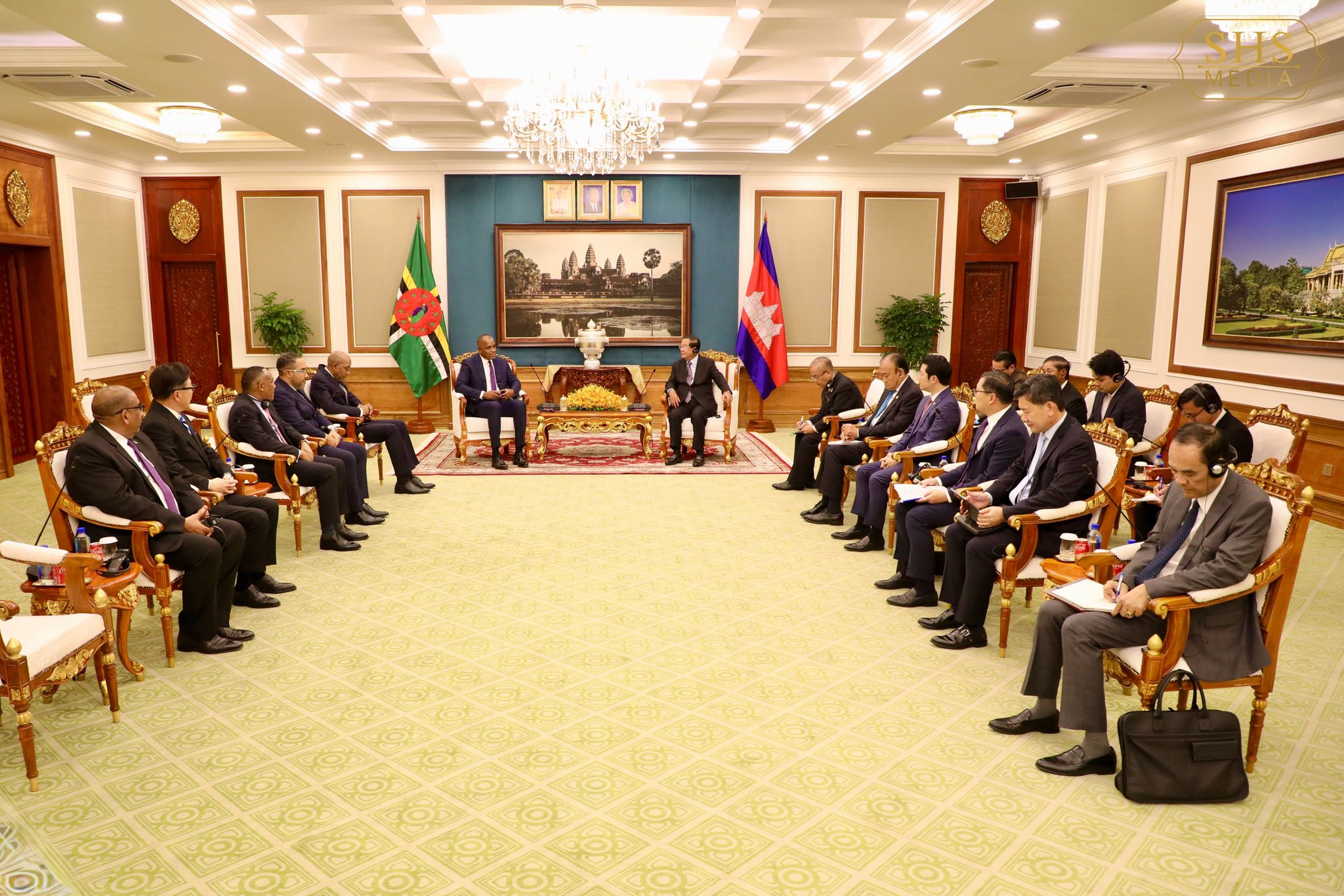 During the courtesy meeting, Samdech Techo Hun Sen highly valued the visit of Honourable Dr. Roosevelt Skerrit, considering it an important step in strengthening relations between the Kingdom of Cambodia and the Commonwealth of Dominica.