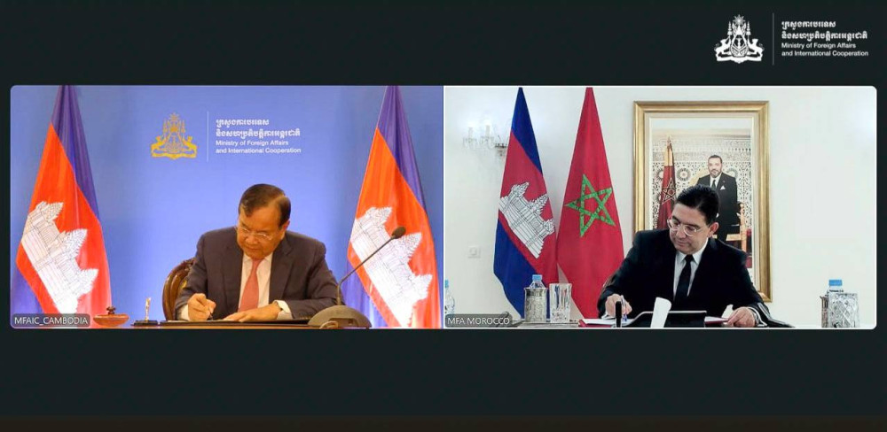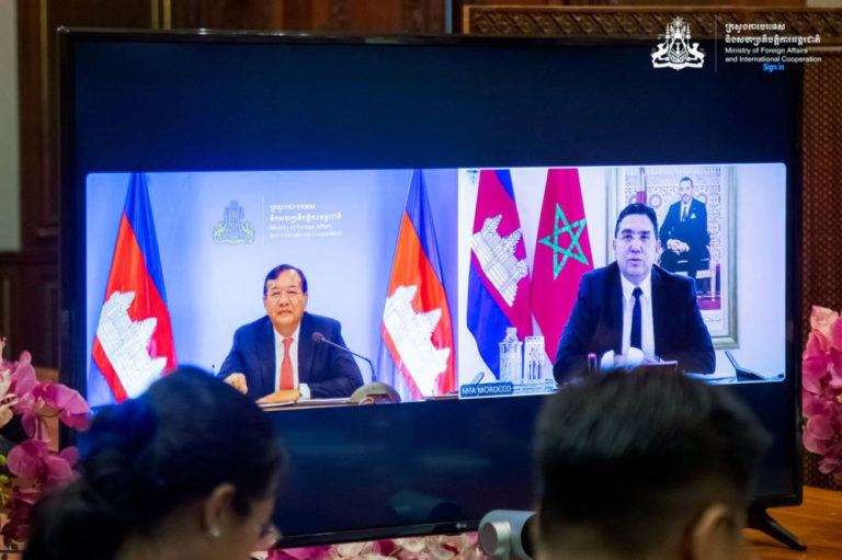 H.E. PRAK Sokhonn, Minister of Foreign Affairs and International Cooperation of Cambodia, this afternoon held a virtual meeting with H.E. Nasser BOURITA, Minister of Foreign Affairs, African Cooperation and Moroccan Expatriates.
