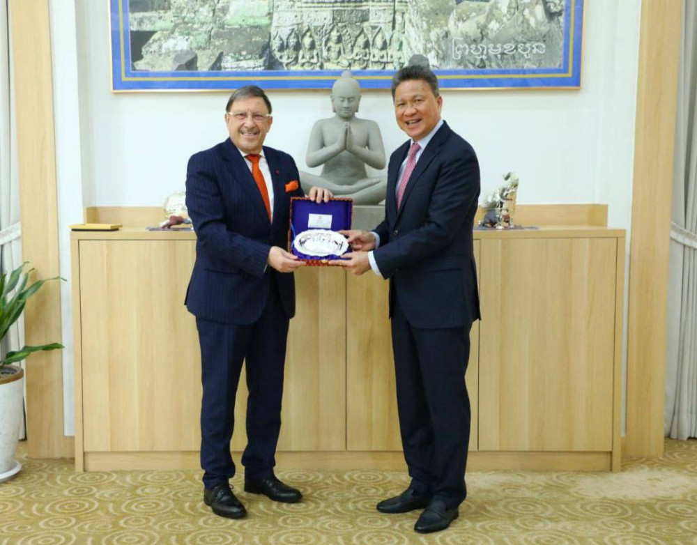Cambodia’s Deputy Prime Minister Sun Chanthol met with Dr. Maxim Behar, a prominent Bulgarian business leader and President of the World Communications Forum based in Davos, Switzerland, on Tuesday morning to discuss enhancing economic cooperation and investment between the two nations.
