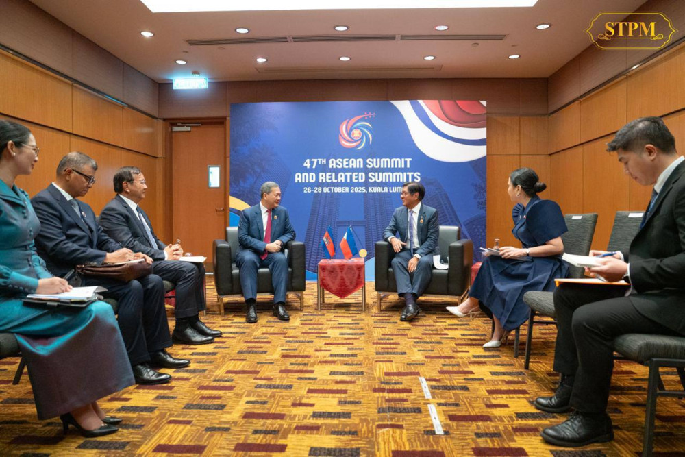 Cambodian Prime Minister Samdech Moha Borvor Thipadei Hun Manet held a pull-aside meeting with H.E. Ferdinand R. Marcos Jr., President of the Republic of the Philippines, in Kuala Lumpur, Malaysia, on Oct. 26.