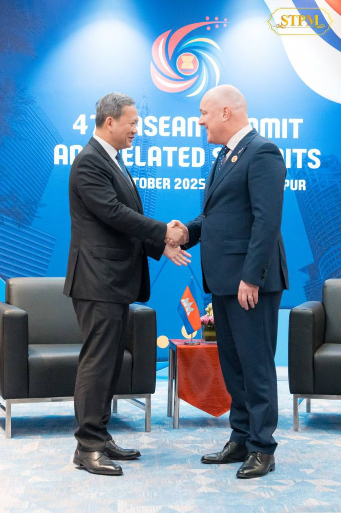 Samdech Moha Borvor Thipadei Hun Manet, Prime Minister of the Kingdom of Cambodia, held a bilateral meeting with H.E. Christopher Luxon, Prime Minister of New Zealand, on the sidelines of the 47th ASEAN Summits and Related Summits in Kuala Lumpur, Malaysia, on Oct. 27.