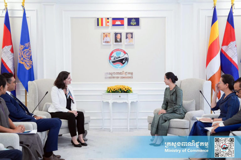 H.E Cham Nimul, Minister of Commerce, received here on Nov. 27 a courtesy call from Ms. Tania Meyer, Country Manager of the World Bank for Cambodia and her colleagues to discuss and strengthen partnership and cooperation in support of trade development in Cambodia.