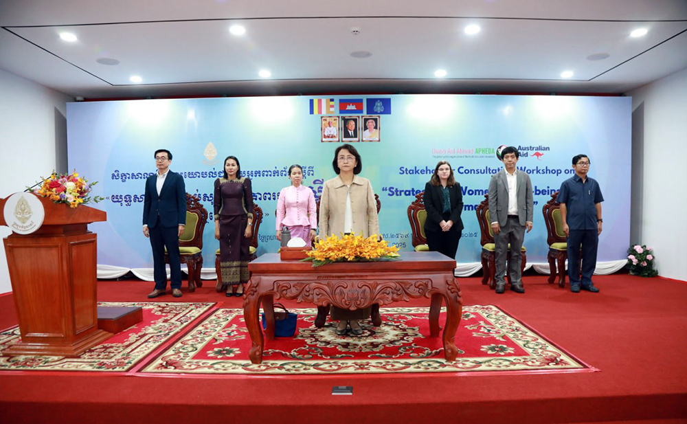 H.E. Dr. Ing Kantha Phavi, Minister of Women’s Affairs, presided over the workshop, which brought together Ms. Kirsty Harris, Head of Development Cooperation at the Australian Embassy in Cambodia, along with leaders and officials from relevant ministries and institutions, national and international organisations, students, and representatives from the private sector.