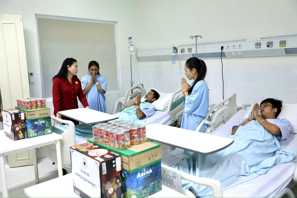 Samdech Kittiprittpundit Bun Rany Hun Sen, President of the Cambodian Red Cross (CRC), visited soldiers wounded while defending the nation’s territorial integrity on Monday, distributing humanitarian aid at hospitals in the capital.