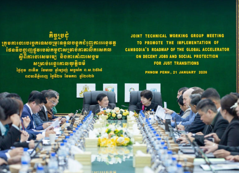 The Ministry of Labour and Vocational Training and the International Labour Organisation (ILO) Office for Thailand, Cambodia and Laos, and representatives of UN agencies have discussed the progress in the implementation of Cambodia’s Global Accelerator (GA) roadmap on Decent Jobs and Social Protection for Just Transitions.