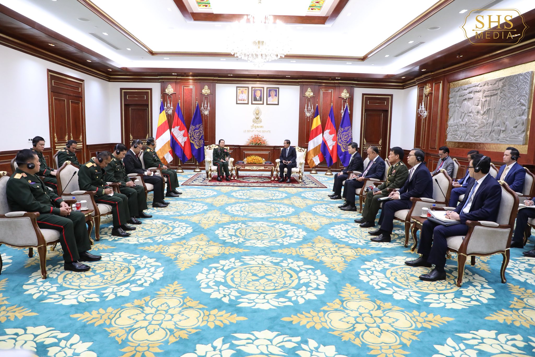 The meeting, held at the Senate Solidarity Palace in Phnom Penh, hosted H.E. Lt. Gen. Saichay Kommasith, Deputy Minister of National Defence and Chief of the General Staff of the Lao People’s Army.