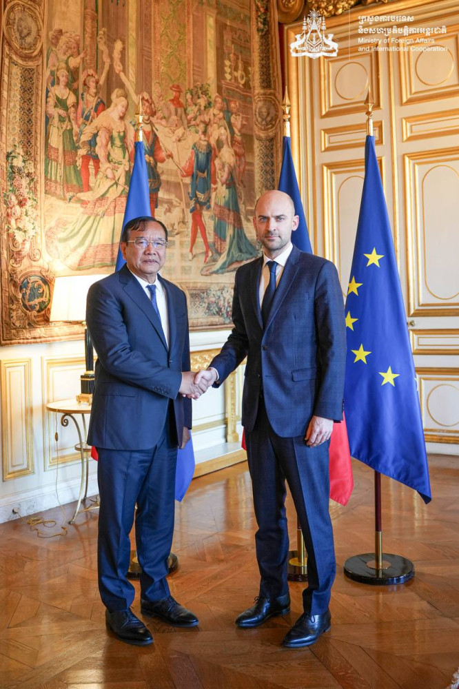 Cambodian Deputy Prime Minister and Minister of Foreign Affairs and International Cooperation H.E. Prak Sokhonn held a bilateral meeting with H.E. Jean-Noël BARROT, Minister of Europe and Foreign Affairs of the Republic of France, in Paris, France on Feb. 25.