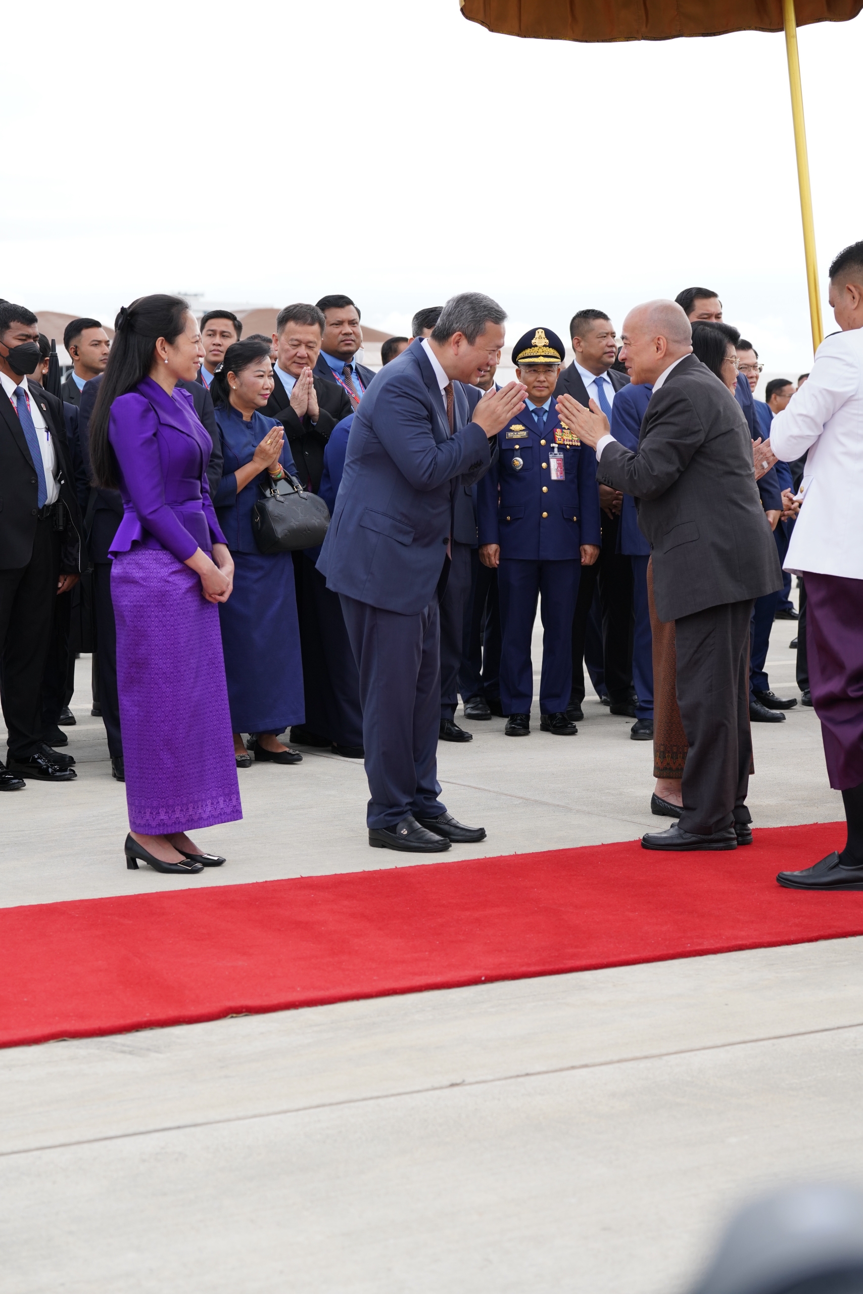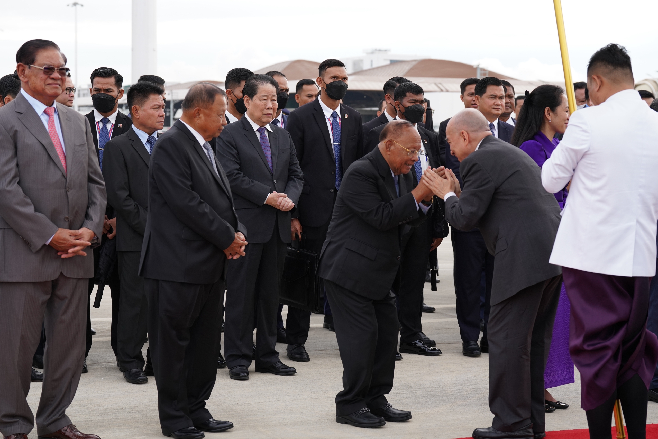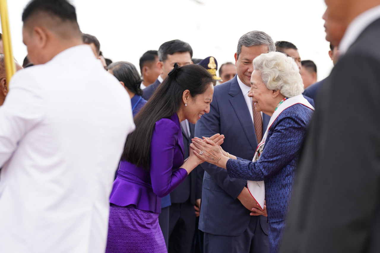 The monarchs were seen off at Techo International Airport by Senate President Samdech Akka Moha Sena Padei Techo Hun Sen and his spouse, Samdech Kittiprittpundit Bun Rany Hun Sen, President of the Cambodian Red Cross; National Assembly President Samdech Maha Rathsapheathika Thipadei Khuon Sudary; Prime Minister Samdech Moha Borvor Thipadei Hun Manet and his spouse, Lok Chumteav Dr. Pich Chanmony Hun Manet, and many other high-ranking officials.