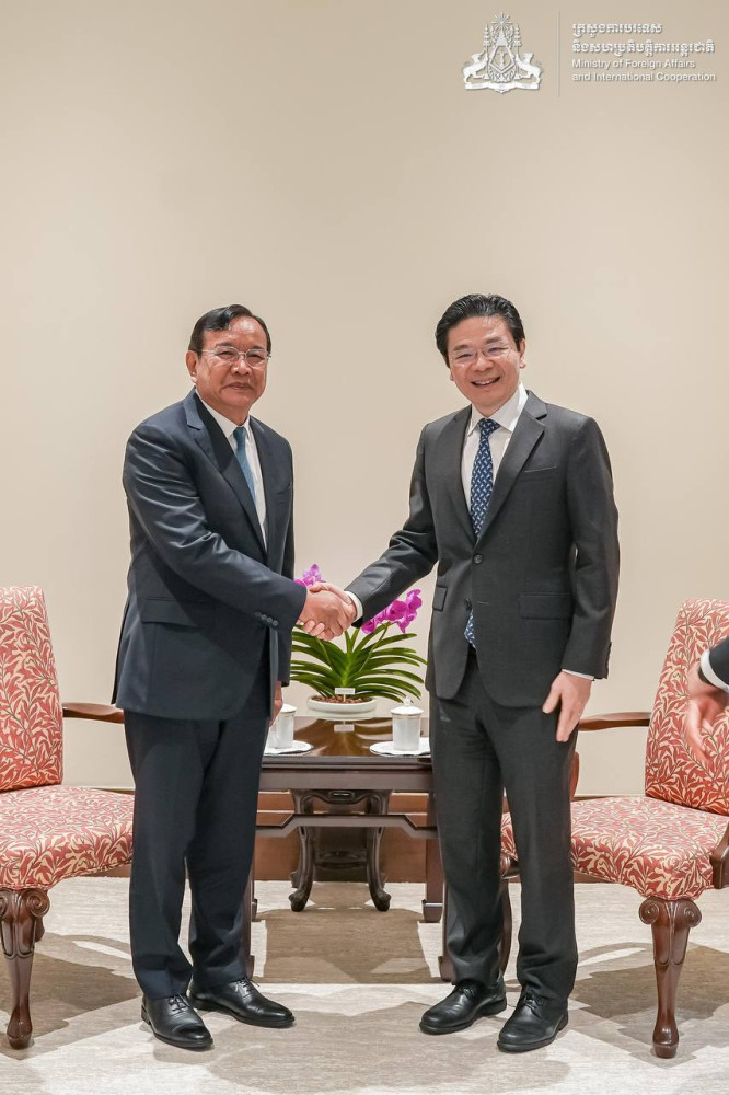 Cambodian Deputy Prime Minister H.E. Prak Sokhonn, Minister of Foreign Affairs and International Cooperation of Cambodia, paid a courtesy call on H.E. Lawrence Wong, Prime Minister of Singapore, on the afternoon of Mar. 11.