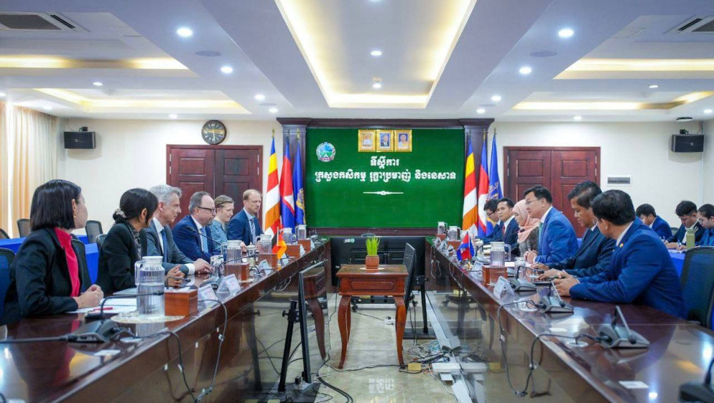 Cambodian Minister of Agriculture, Forestry, and Fisheries, H.E. Dith Tina met in Phnom Penh with German Ambassador to Cambodia H.E. Stefan Messerer and a delegation from Fuchs Gruppe, led by CEO Nils Meyer-Pries, to discuss expanding agro-industrial trade and technical cooperation.