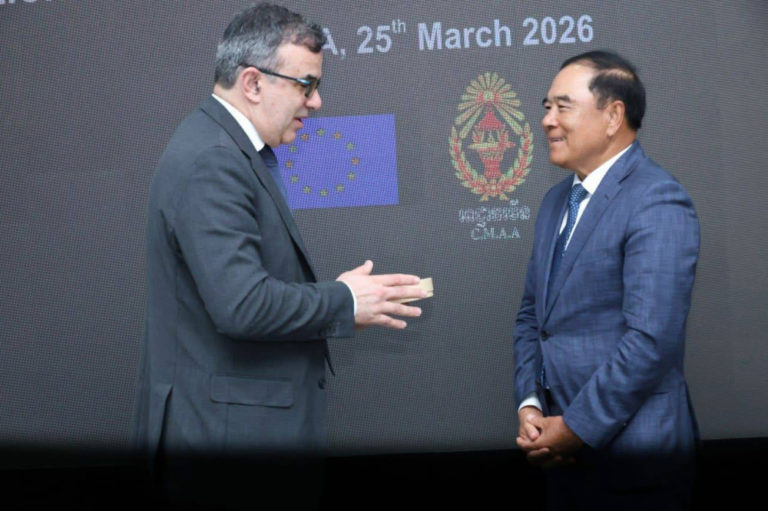 Cambodian Senior Minister H.E. Dr. Ly Thuch has requested the European Union (EU) to continue supporting the Kingdom’s vision toward becoming a nation free from the impact of landmines and explosive remnants of war (ERW), with a particular focus on clearing munitions left behind by the Thai military.
