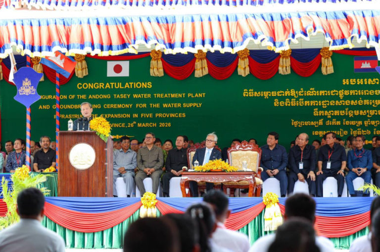 “I hope the Japanese Ambassador will help attract more Japanese investment to Cambodia, especially in Svay Rieng. I encourage and welcome investors to the eastern region,” he said while presiding over the inauguration of a water treatment plant in Svay Rieng and the groundbreaking ceremony for water infrastructure expansion across five provinces.
