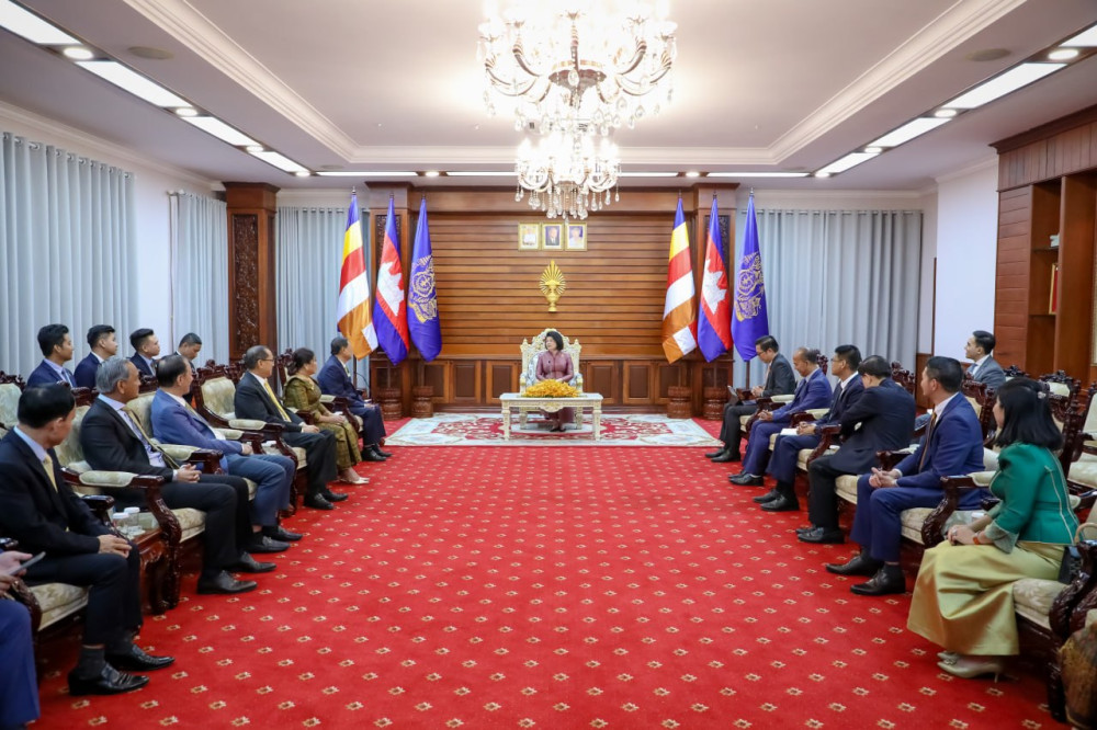 Samdech Maha Rathsapheathika Thipadei Khuon Sudary, President of the National Assembly of Cambodia, received here on April 6 a delegation from the Federation of Associations for SMEs of Cambodia (FASMEC), led by Oknha Te Taing Por, Chairman of the Board of the Techo Foundation for SME Development in Cambodia and President of FASMEC.
