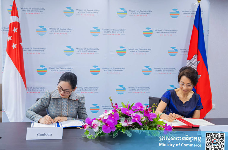 H.E. Mrs. Cham Nimul, Minister of Commerce of the Kingdom of Cambodia, and H.E. Ms. Grace Fu, Minister for Sustainability and Environment and Minister in Charge of Trade Relations of the Republic of Singapore, signed the Memorandum on April 10 in Singapore, following their bilateral meeting.